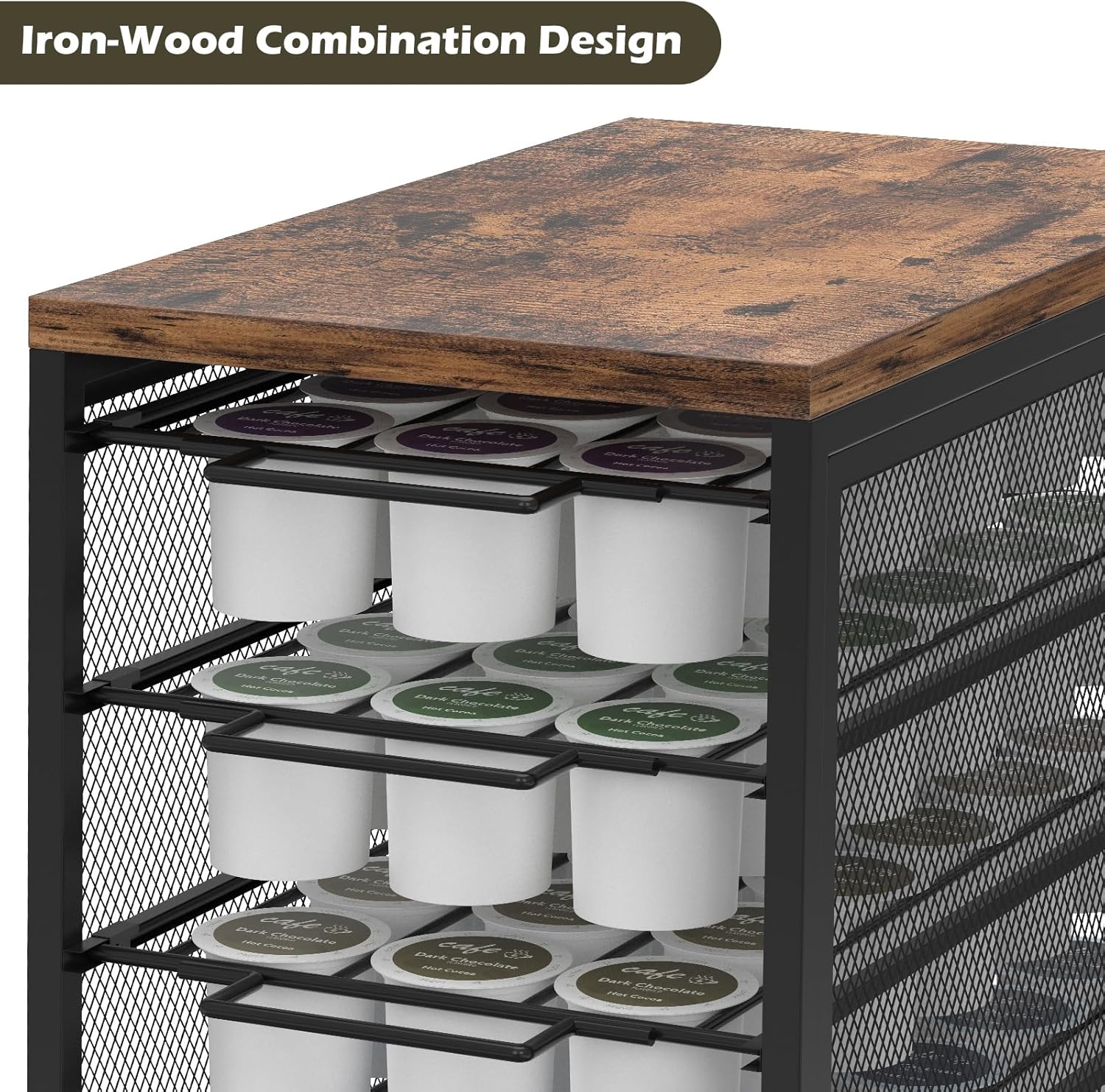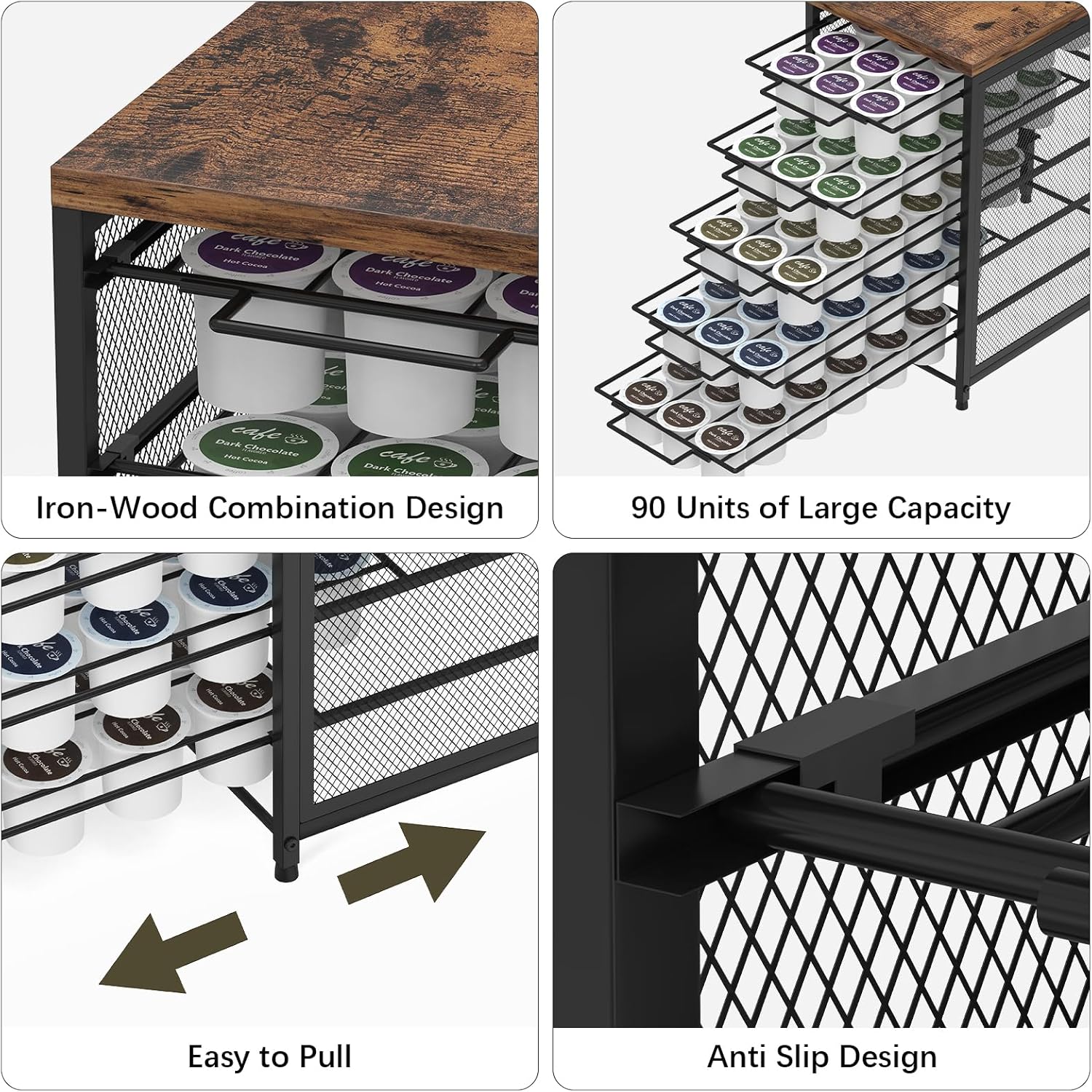 【Fashion Design】 The k cups storage that combines a metal frame and wood, suitable for kitchens, living rooms, lounges, or office coffee bars. The wooden top of the k cups holders for counter is made of sturdy and durable high-quality wooden boards, providing strong support for the coffee machine.