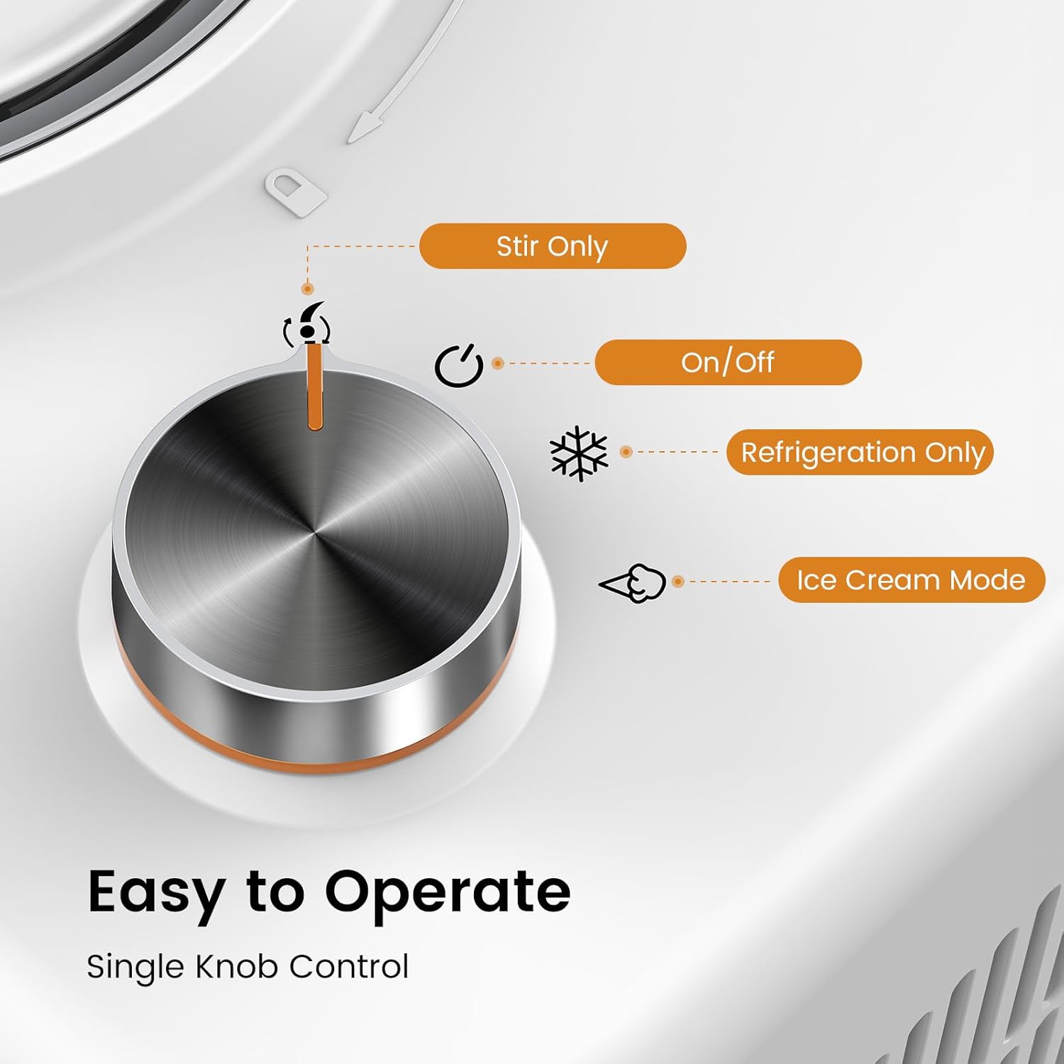 Unique Design: The COWSAR automatic ice cream maker has a sleek exterior and easy-to-operate control knobs for easy operation as well as storage and placement on a tabletop.