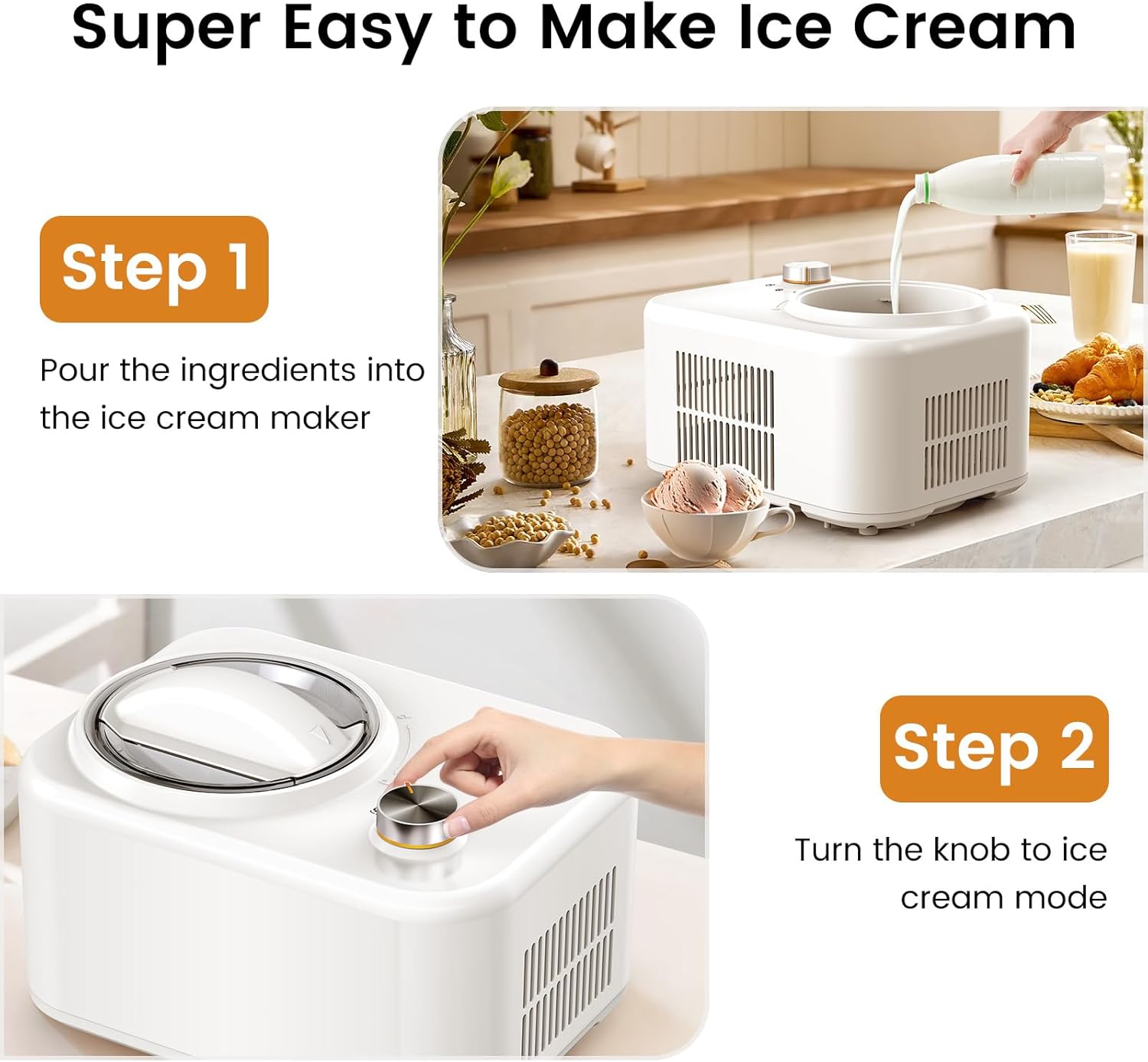 COWSAR 1 Quart Ice Cream Maker Machine with Built-in Compressor, Fully Automatic, No Pre-freezing, 1 Hour Keep-cooling, Easy to Clean