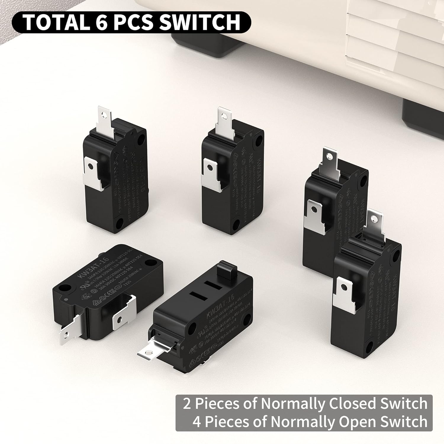 Microwave Switch: Total 6 pcs of KW3AT-16 microwave door switches, 2 pcs normally closed and 4 pcs normally open.