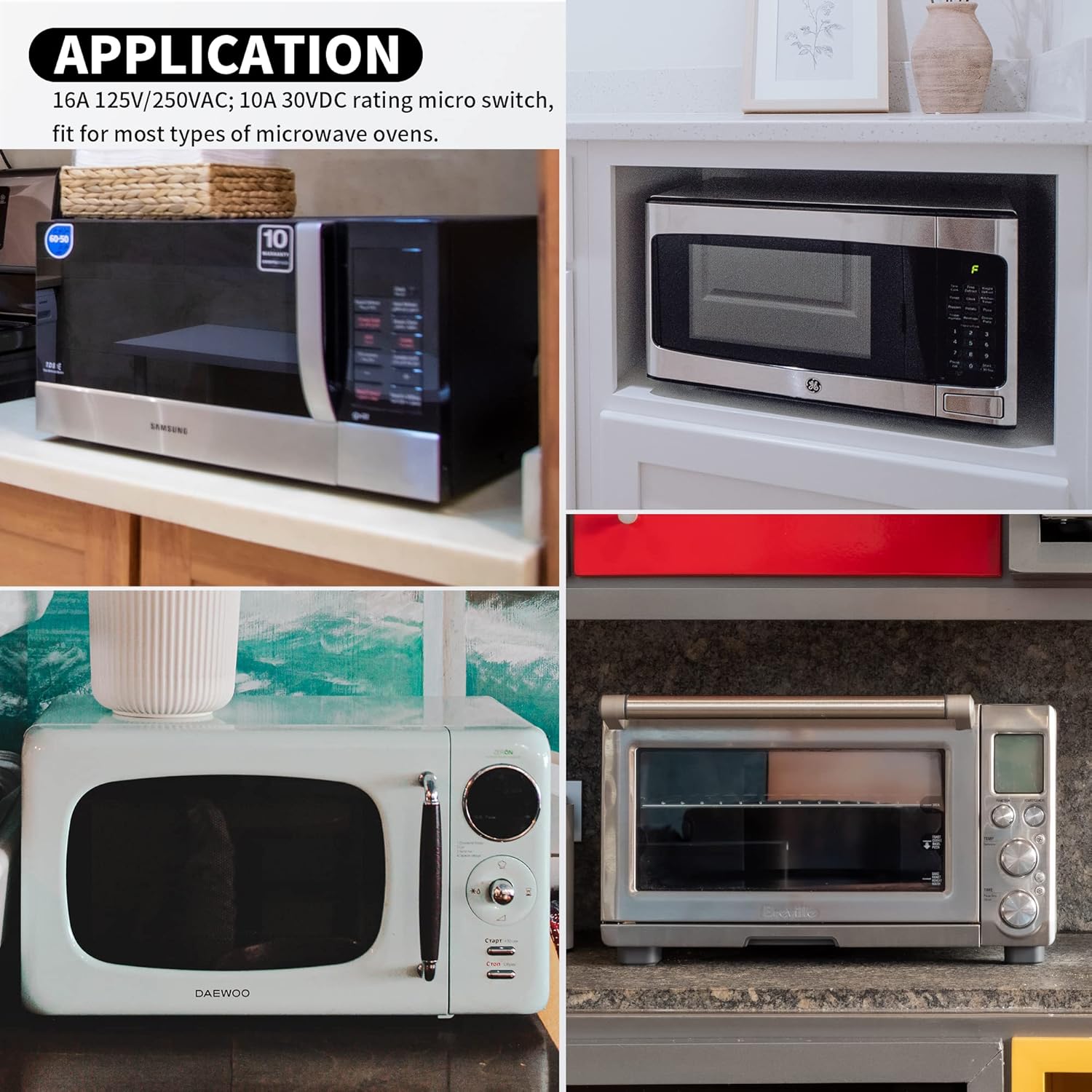 The rating of the microwave switch is 16A 125VAC/250VAC; 10A 30VDC rating micro switch, fit for most types of microwave ovens.