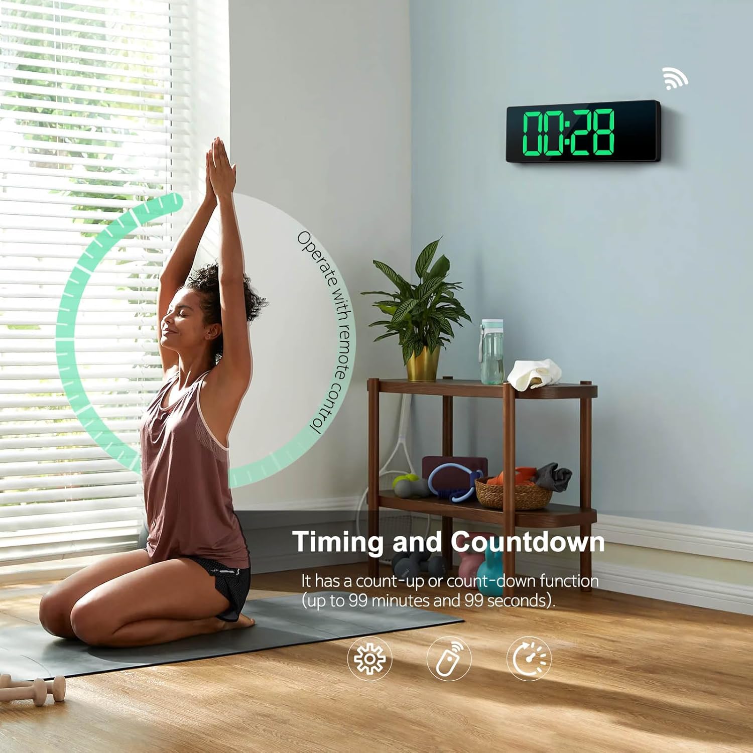 【Convert 11 Colors Freely】16″ High definition LED large screen display, the digital wall clock can change 11 colors of jumbo digits with remote control. You can read the wall clock clearly, even in the distance or corner. ATTENTION: Must be plugged in to work. Not battery operated.