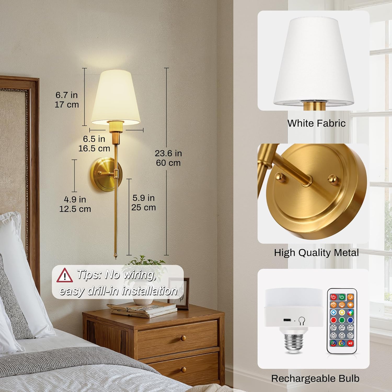 【Easy Installation】- This non-hardwired wall sconce eliminates the need for an electrician. Installation instructions are provided in the picture. You can install it on the ceiling or wall with no wiring required. Drilling a hole is necessary, and all the necessary screws are included. A smart choice, these sconces are invaluable during power outages.
