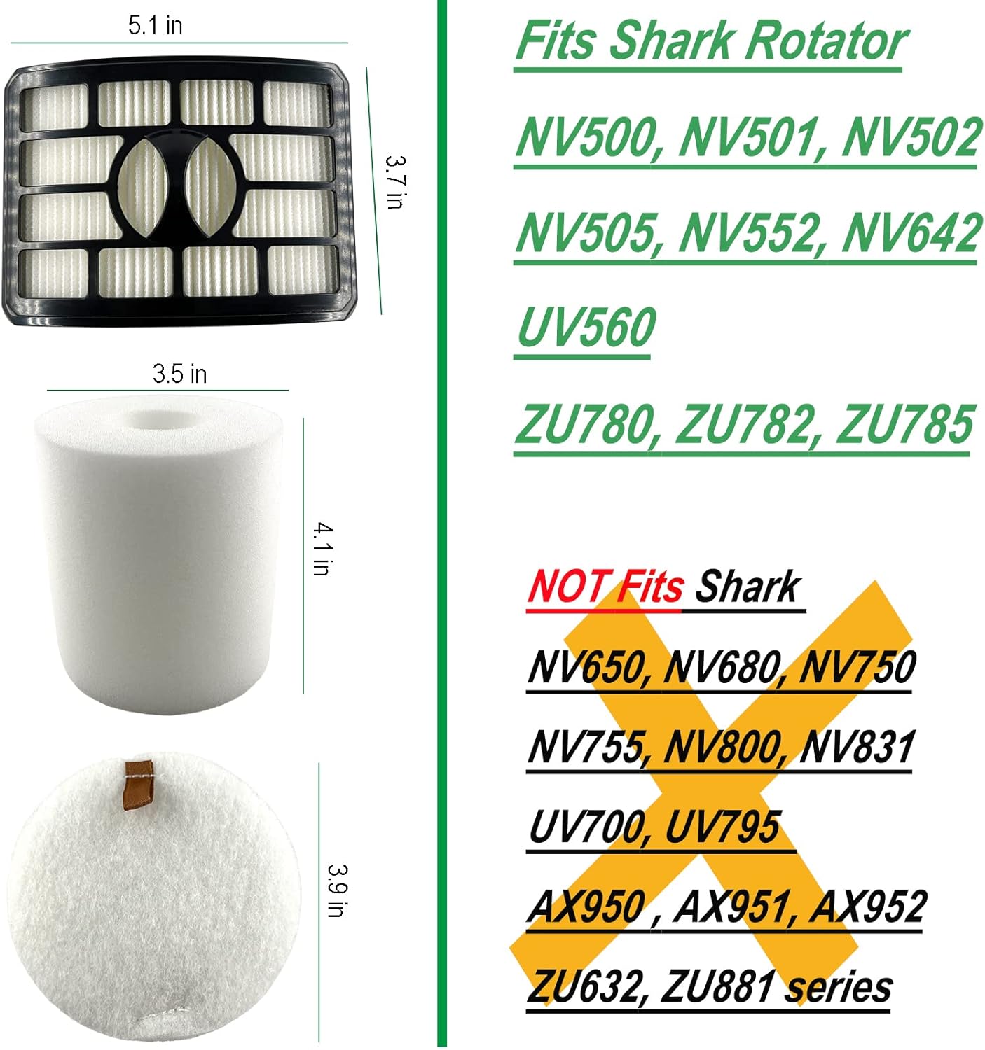 Dttery 2 Foam & Felt Kit, 1 Hepa Filter for Shark Rotator Professional Lift-away Upright Vacuum NV500 NV501 NV502 NV505 NV552 NV642 UV560 ZU780 ZU782 ZU785 Replacement Part XHF500 XFF500