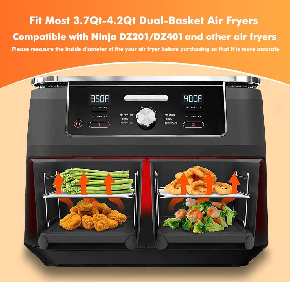 Suitable for use with Ninja Dual Air Fryer DZ401, DZ201 and most other brands 3.7Qt – 4.2Qt dual basket air fryers.