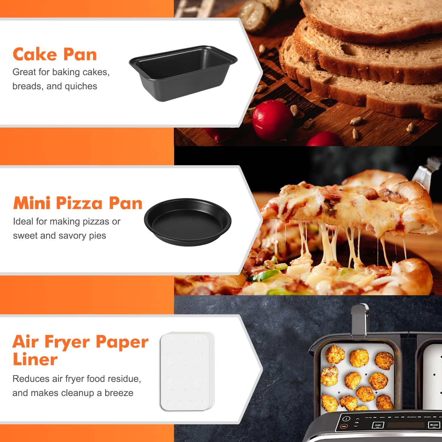 Dual Basket Air Fryer Accessories, Set of 10 Fit for Ninja Dual Air Fryer DZ201, DZ401 & Most 8 Quart – 10 Quart and Larger Dual Zone Air Fryer, Include Cake Pizza Pan, Rack & Skewer, Paper Liner, etc