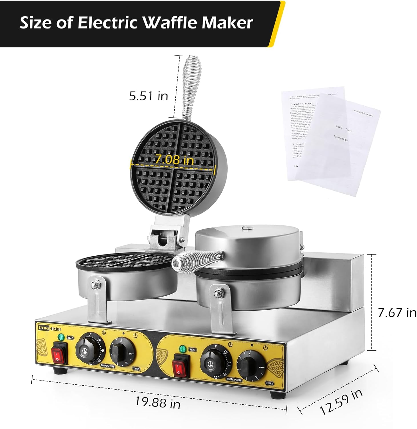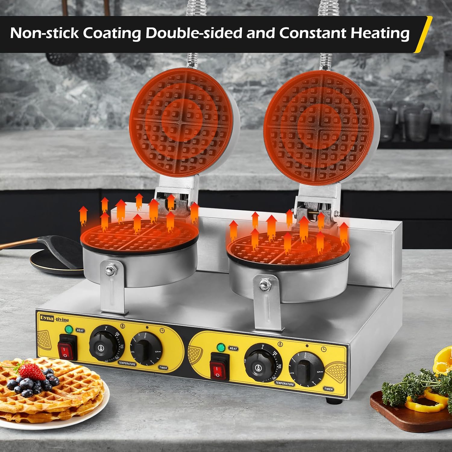 Dyna-Living Commercial Waffle Maker Double Head Waffle Maker, 2400W Non-Stick Commercial Waffle Iron Stainless Steel Waffle Machine for Restaurants, Large Waffle Machine Commercial