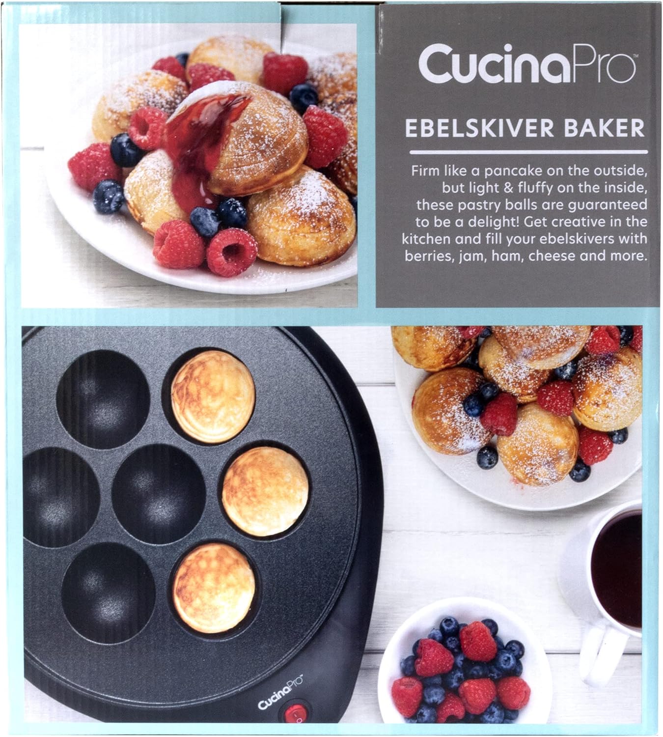 Ebelskiver Maker- Electric Non-stick Baker for Making Takoyaki, Ebelskiver or Octopus Balls, Aebleskivers, Donut Holes & Cake Pops, Unique Danish Mini Pancakes or Dessert Treat- Baking Gift for Her