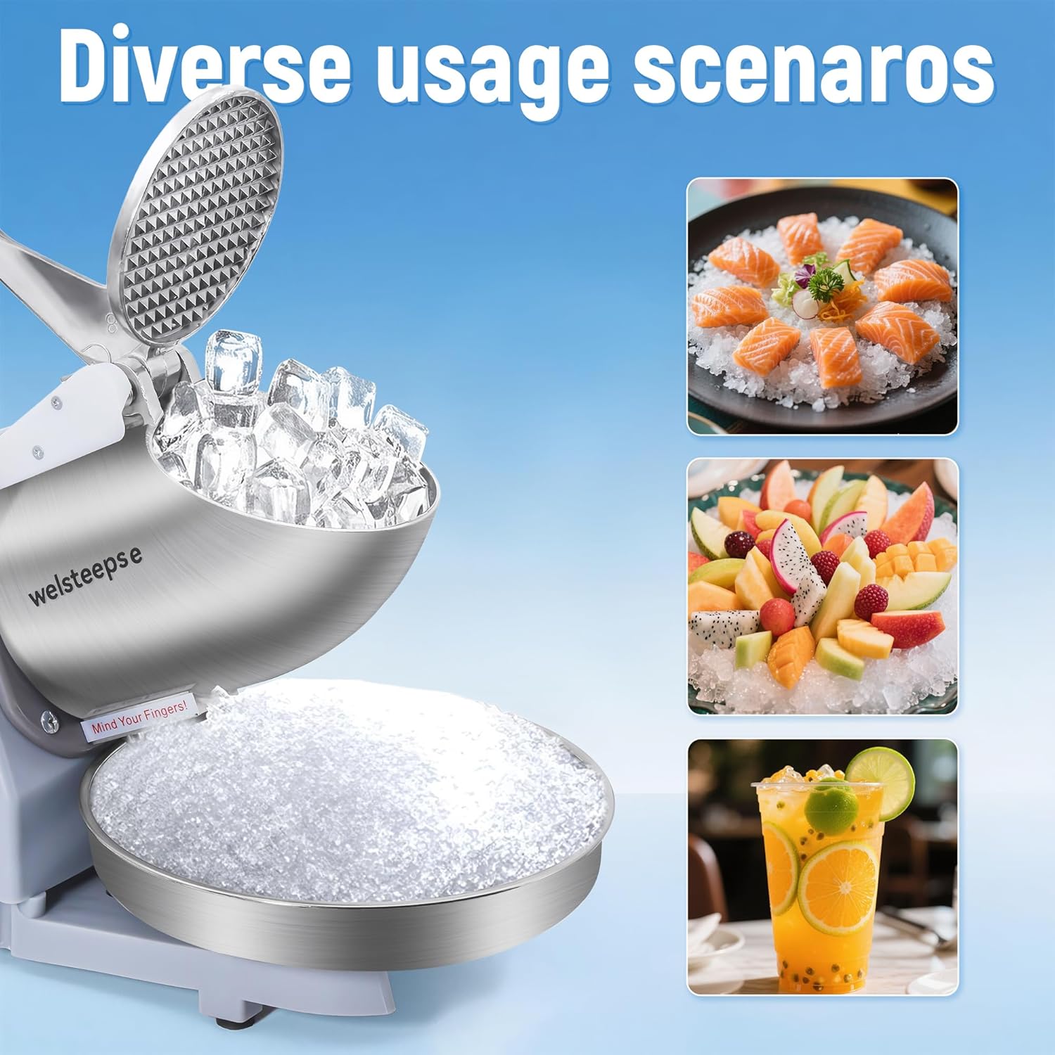 Versatile Applications: Enjoy shaved ice on its own or top it with your favorite syrups, juices, or other flavorful additions for a refreshing dessert or beverage.