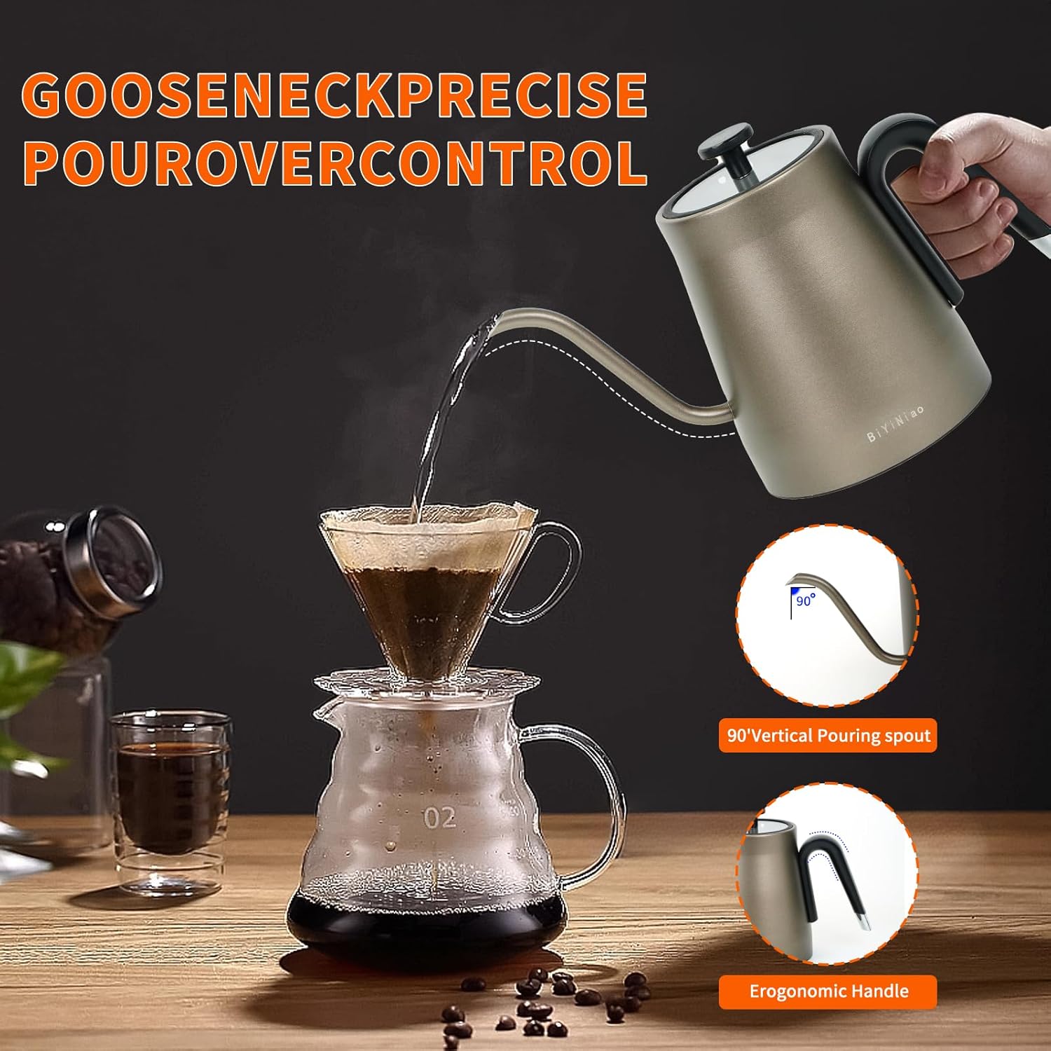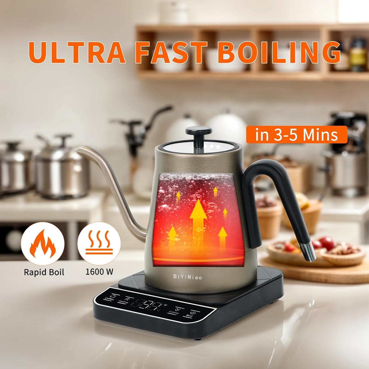 Electric Kettle Gooseneck Pour Over Kettle ±1℉ Temperature Control Quick Heating Water Boiler for Coffee & Tea & Formula Auto Shut Off Tea Kettle, 100% Stainless Steel,1200 W, 0.8L