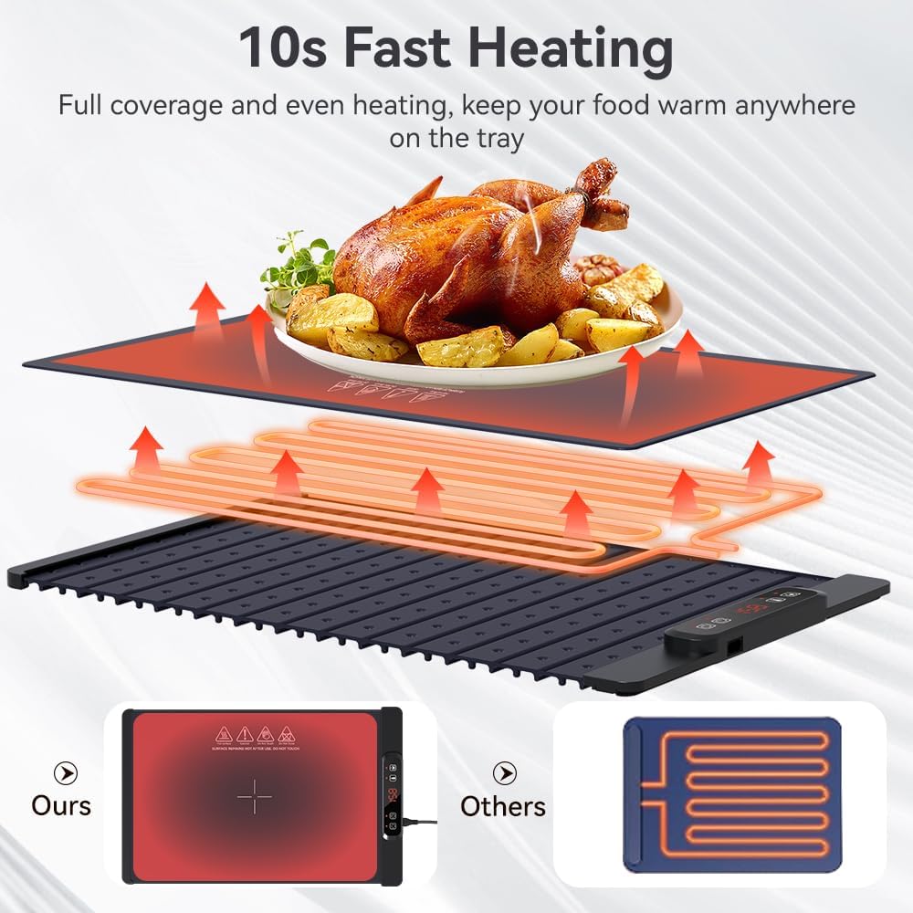Multi-Functional Electric Warming Tray: Our food warmer is widely use enough to quickly heat and keep food warm at events, such as family dinners, parties, festivals and buffets, keeping your food always tasting its best, giving you the best dining experience