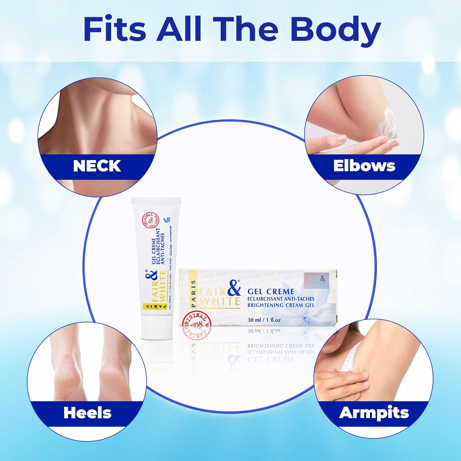 FAIR & WHITE Original Skin Brightening Gel Cream – 30ml / 1floz – For Neck, Face, Armpit, Elbows, Private Areas, Brightening Gel for Uneven Skin Tone