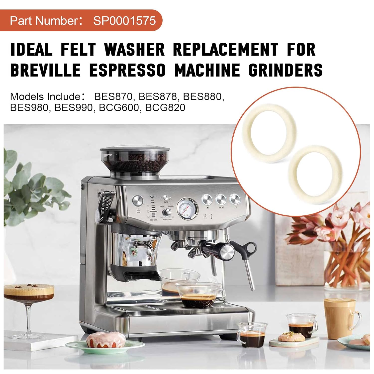 【Ideal Felt Washer Replacement】The felt washer lower burr fit for Breville Espresso machine grinders include BES870, BES878, BES880, BES980, BES990, BCG600, BCG820. The lower burr washer part number is SP0001575.