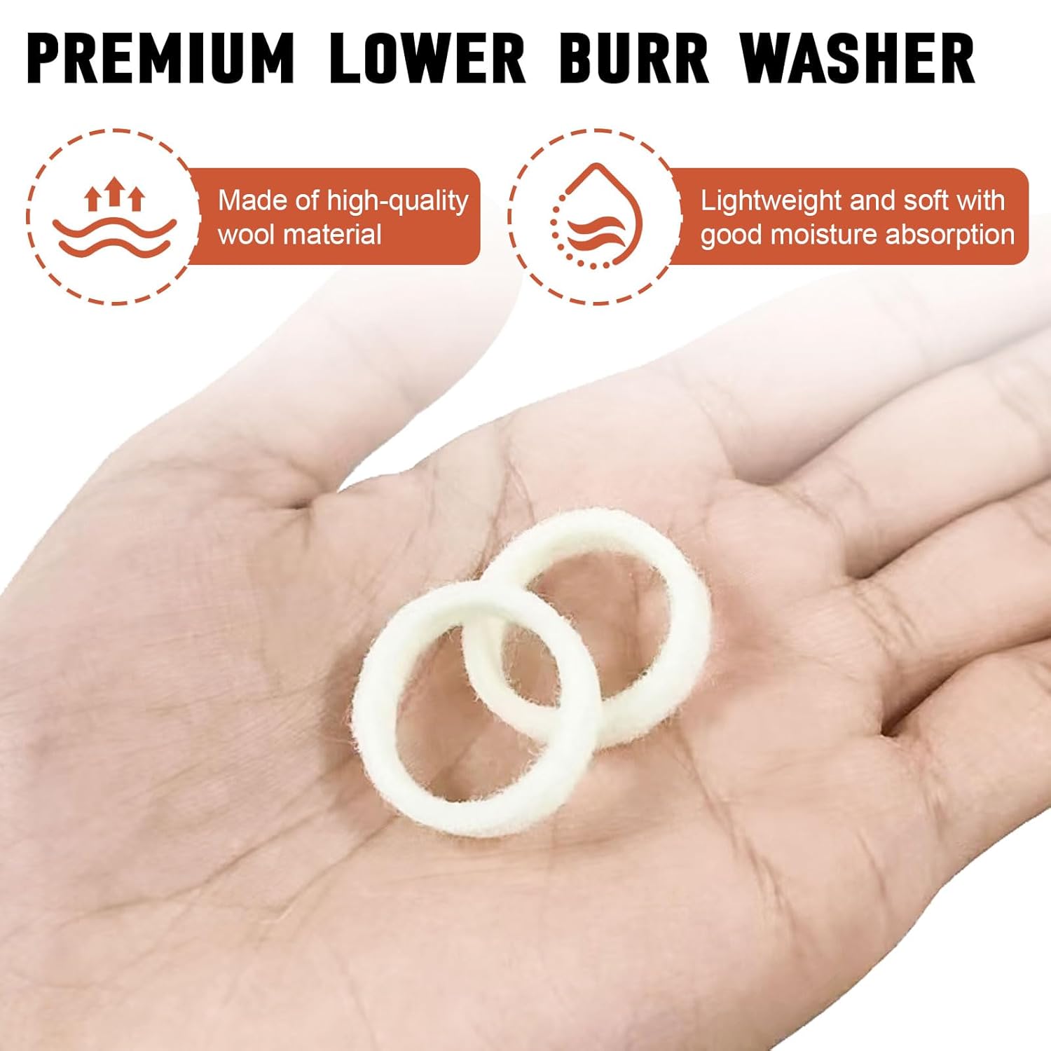 【Felt Washer Package】2 x Felt washer lower burrs for Breville espresso machine grinders BES870XL, comes with the central wool circle to protect the ring from transformation during shipping.