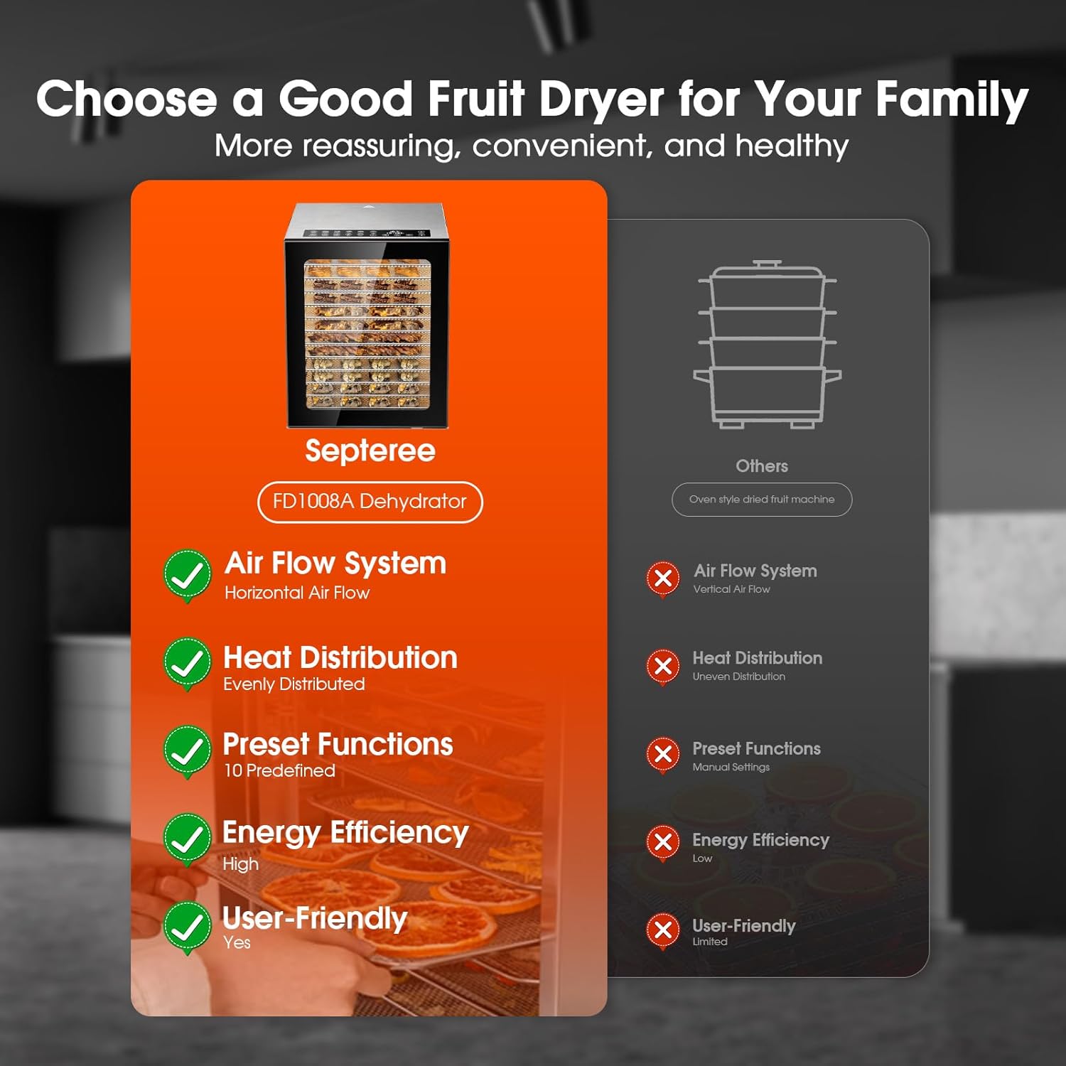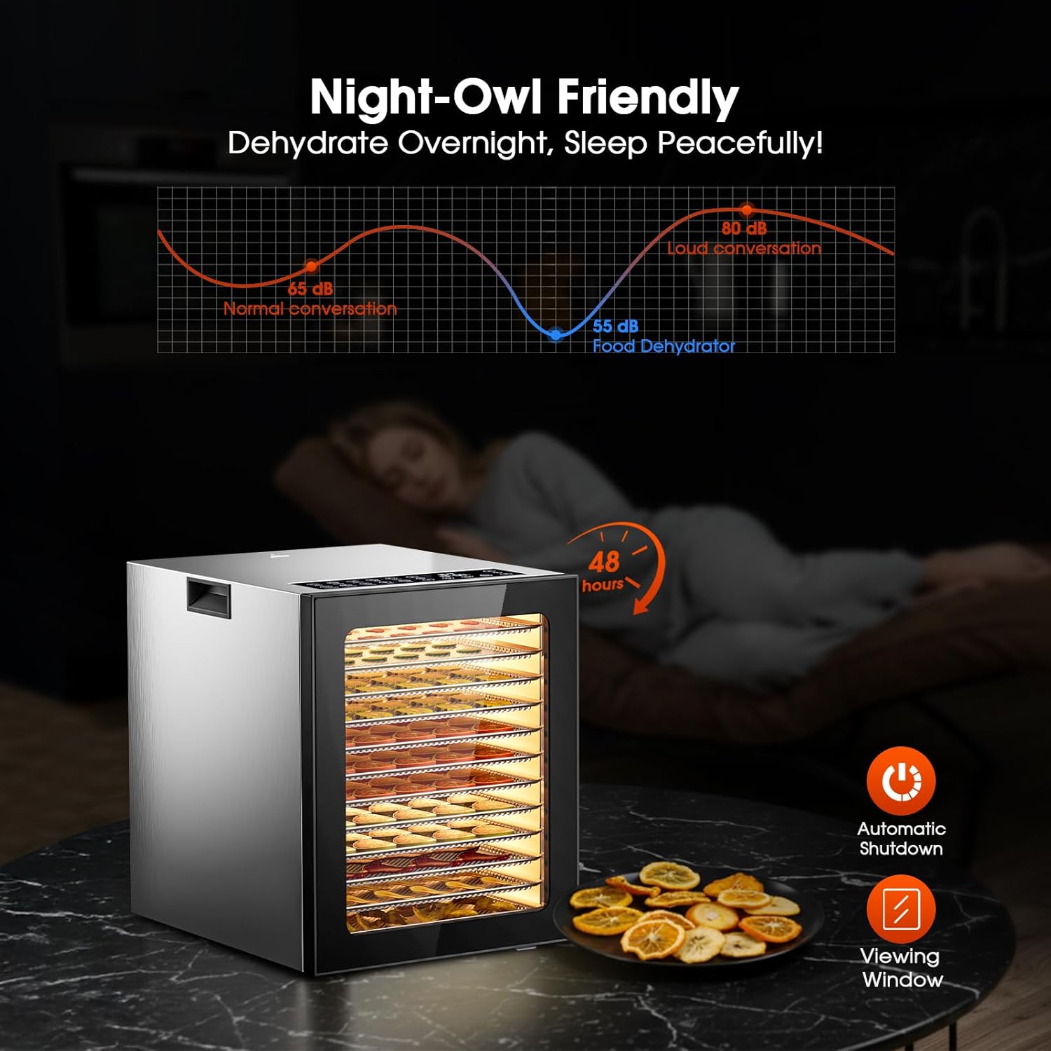 Even & Fast Heating: Our dehydrators use rear fan, ensure stable airflow for even drying and great taste, also operates quietly. 850W high power can quickly dry food.
