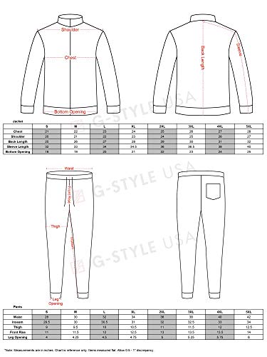 Specification: G-Style USA Men’s Side Stripe Zipper Jacket Drawstring Waistband Tracksuit