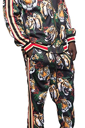 G-Style USA Men’s Side Stripe Zipper Jacket Drawstring Waistband Tracksuit