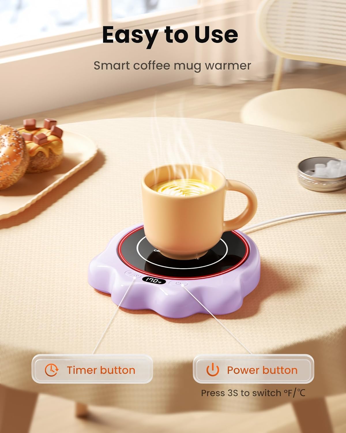 Gaiatop Mug Warmer, 50W Cute Cat Paw Cup Warmers, 3 Temp Settings, 2-10H Auto Shut Off, Coffee Accessories Keep Beverage Hot for Desk and Home Use, Large Heated Plate for Milk Tea Cocoa Candle Purple