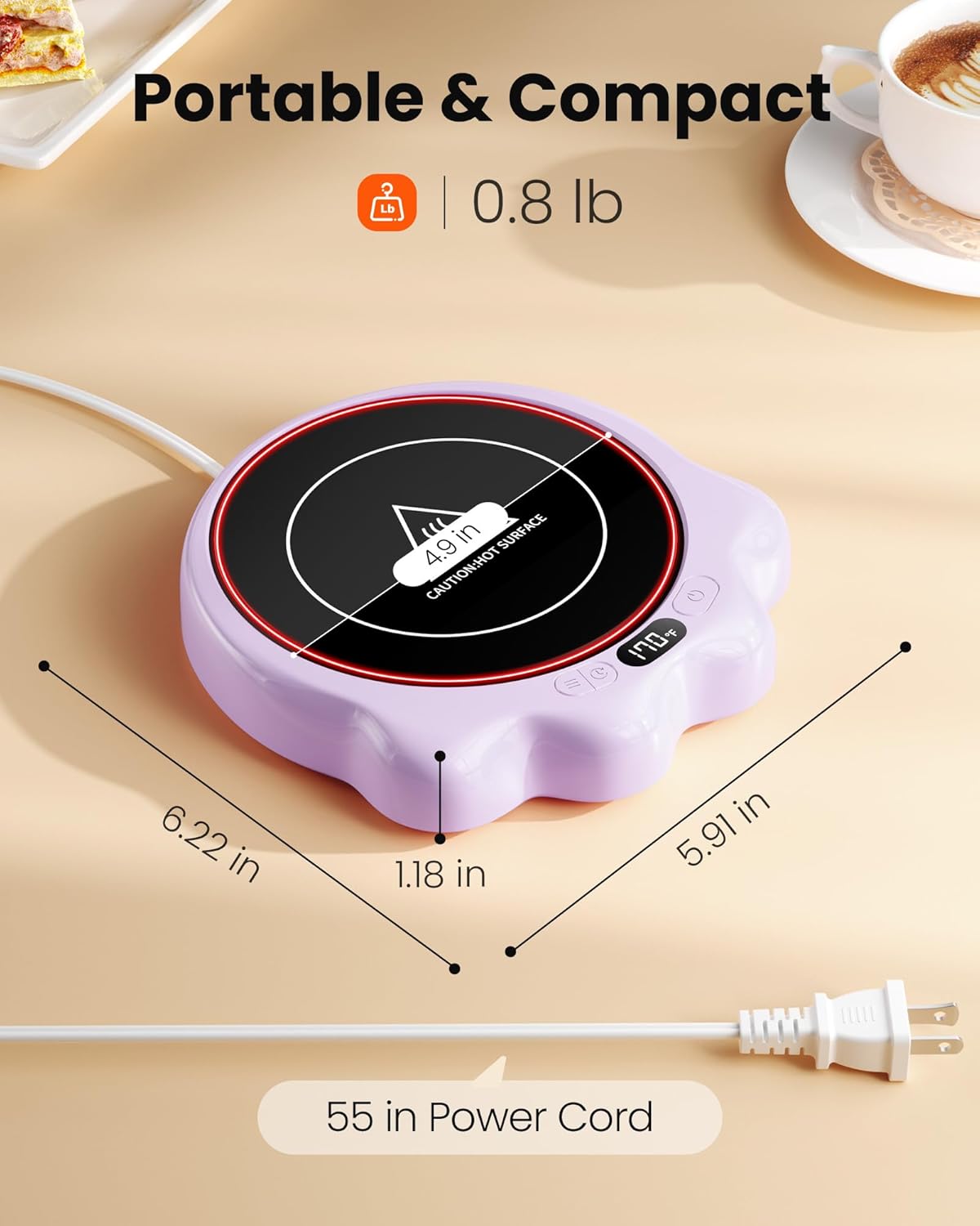 User Friendly Design: The tea warmer equipped with LED digital display, intuitively show the temperature and working status; waterproof glass heating panel, easy to clean, just wipe to clean it; Portable size is easy to carry on trips, enjoy hot beverages anywhere