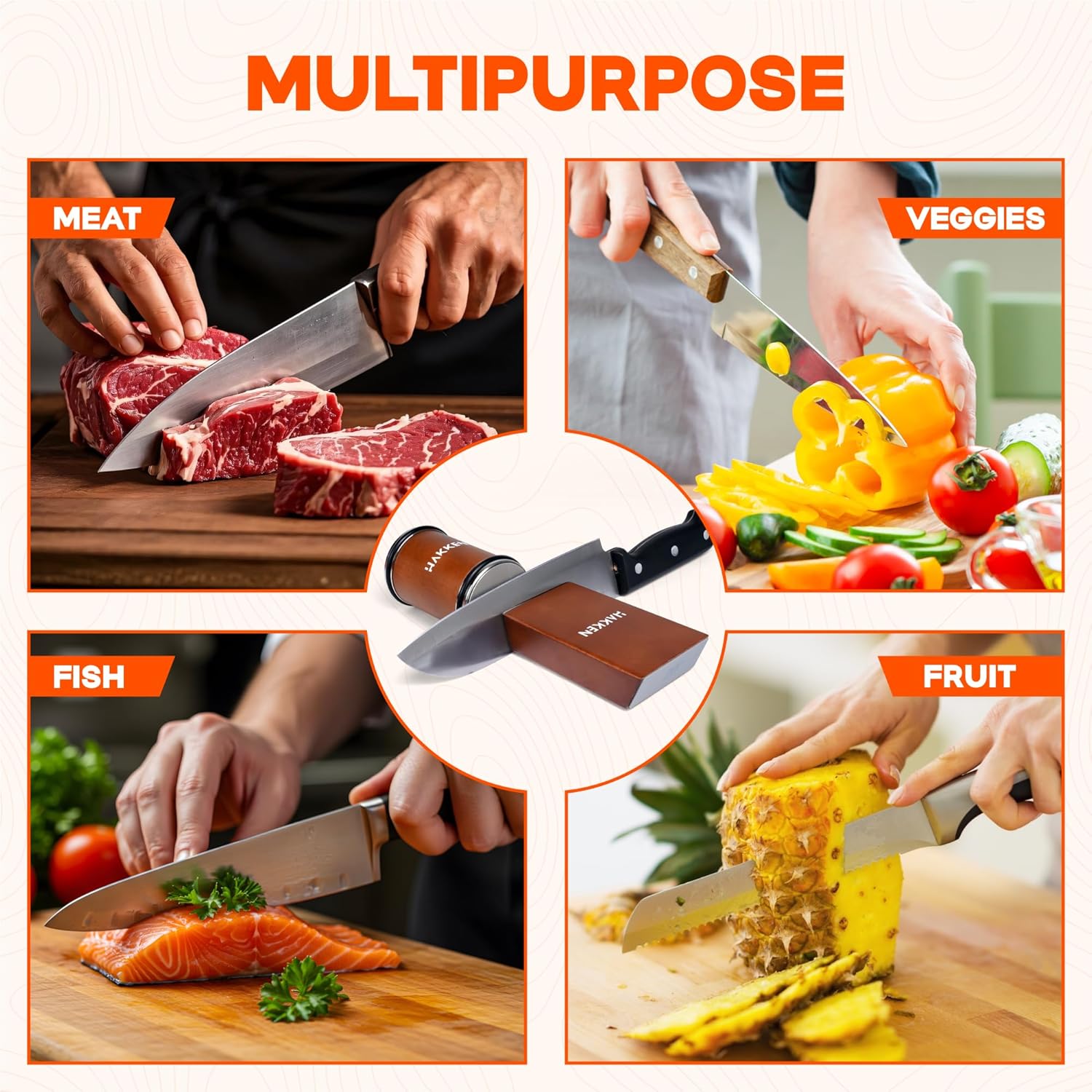 Be the first to review “HAKKEN Rolling Knife Sharpener Kit with Diamond Sharpening Stone for kitchen knife sharpener – Best tool for kitchen. Professional knife sharpener kit.”