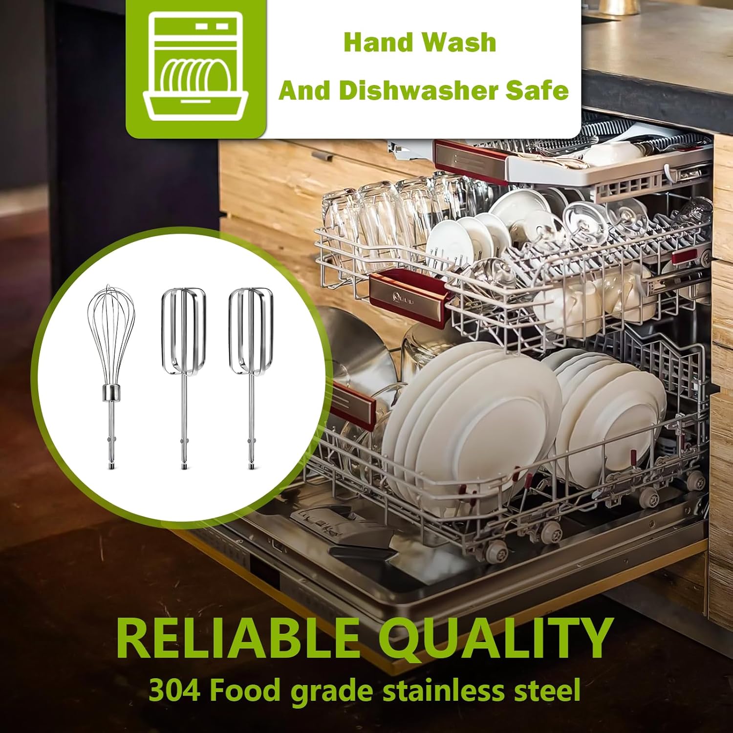 【Easy To Install】- Just push the tip of the beater/whisk into the slot, it’s quick and easy. Save the money of having to buy a whole new mixer. Smooth and polished surface, easy to clean without food residue, can also be put into the dishwasher to clean to ensure dishwasher safety.