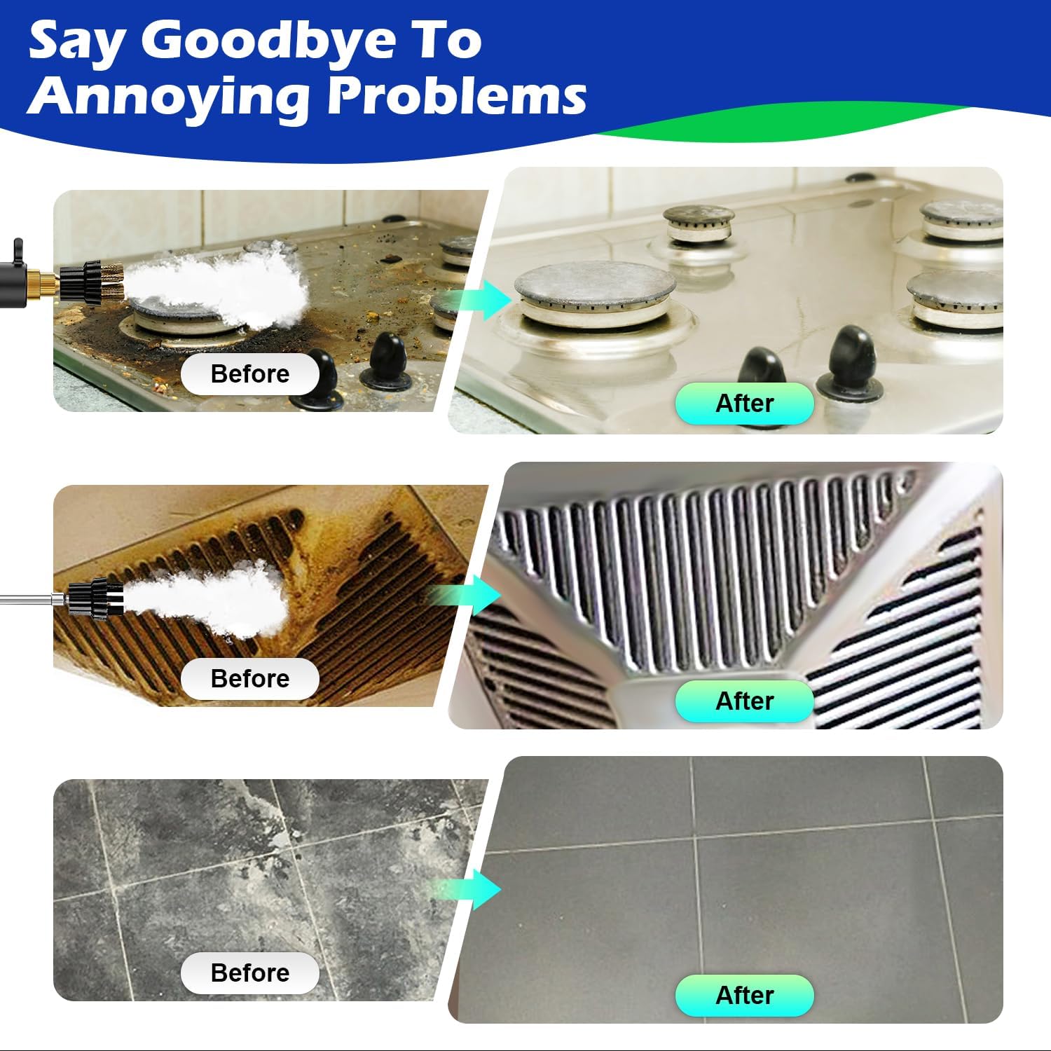High Temperature Steam Cleaner – This pressurized steam cleaner has powerful 2500 watts, it can generate 230°F high temperature steam, which can easily remove stubborn oil stains and stains. The high temperature steam cleaner is easy to operate and deep clean, it can well meet your different daily cleaning needs.