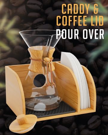 QUALITY CRAFTSMANSHIP – Handmade with care from premium-grade bamboo and silicone, our caddy exudes quality and durability. Every detail is meticulously crafted to ensure your pour-over coffee setup is both functional and elegant. With its eco-friendly materials and superior craftsmanship, our coffee organizer station is a testament to excellence in coffee storage solutions.