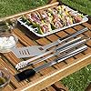 COMPLETE SET- This high quality set comes with everything needed for a successful cook out. Easily season steaks with the basting brush, flip hot dogs or burgers the spatula or tongs, eat corn with the corn holders or grill kabobs with the skewers.