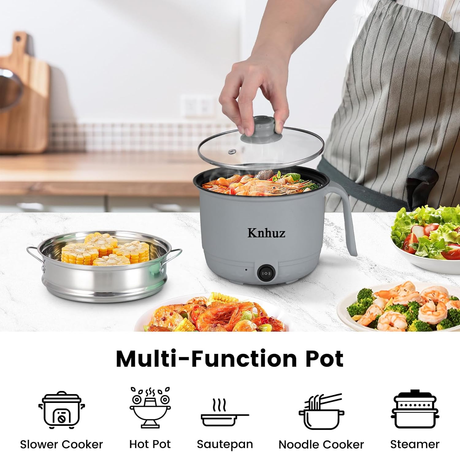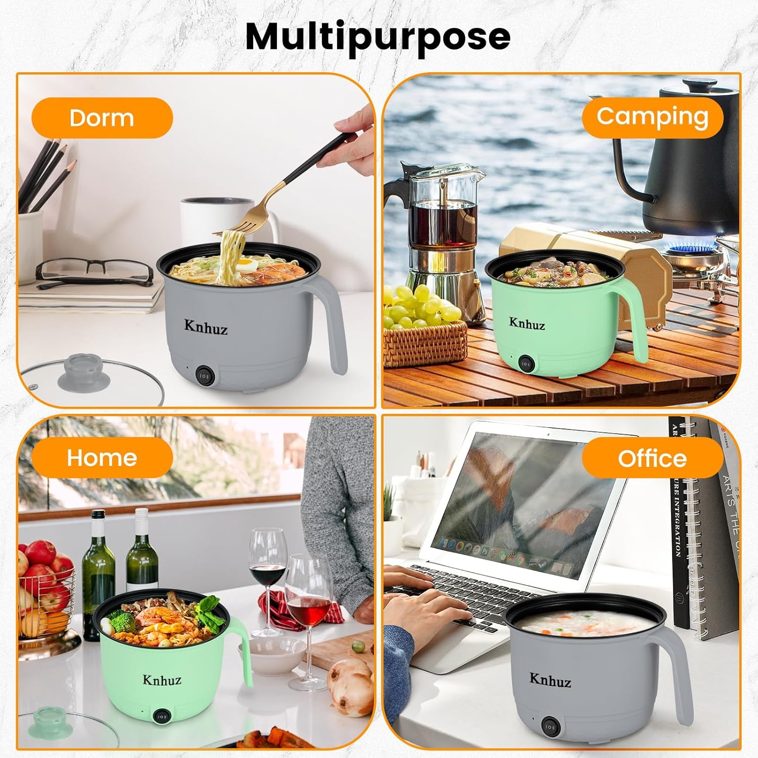 【Dual Safety Protection】Knhuz electric pot uses 360° round embedded heating element technology to heat food evenly and finish heating faster than ordinary pots.Equipped with overheating protection and boil dry protection technology,the ramen noodle cooker will shut itself off when the temperature is over the selected value or there’s no water inside. Please feel free to contact Knhuz service team if you have any questions during use.