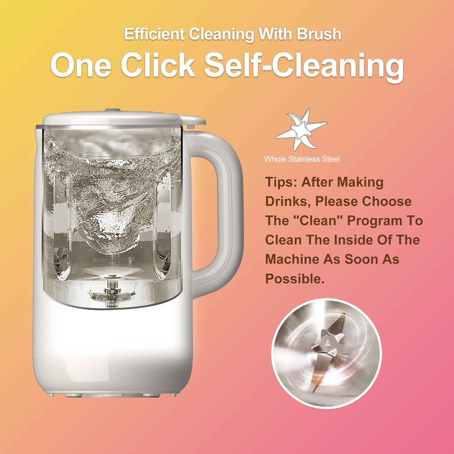 Durable & Easy to Clean: 304 stainless steel material Strong thermal conductivity, combined with stainless steel inner cover, having strong insulation and cooling properties, the smooth surface reduces residue during self-cleaning, and the equipped cleaning brush is used to clean the difficult to clean parts inside.
