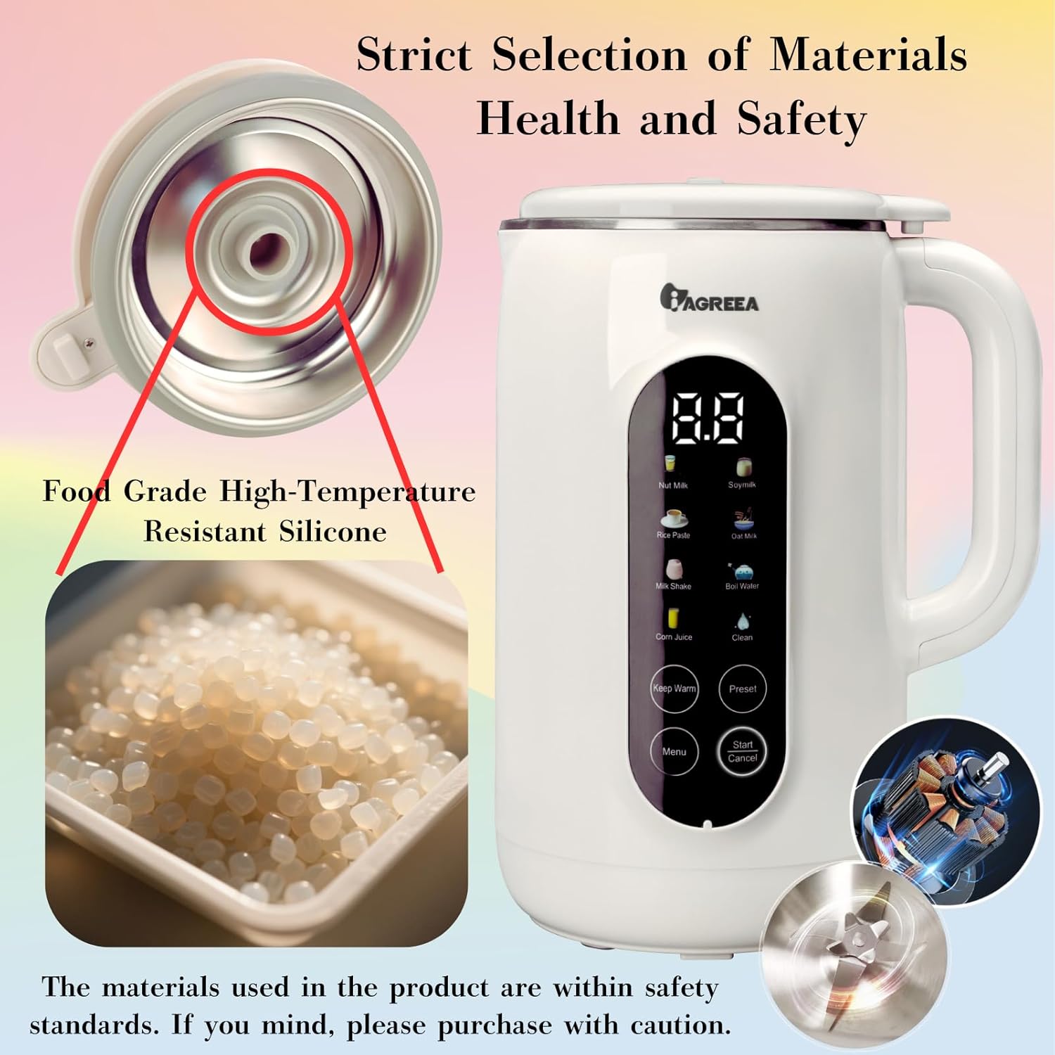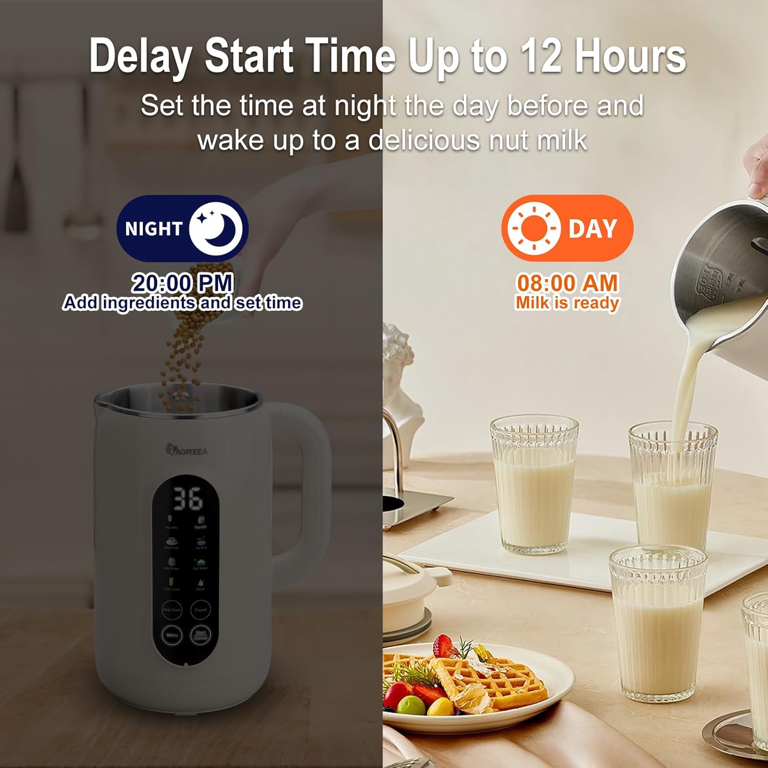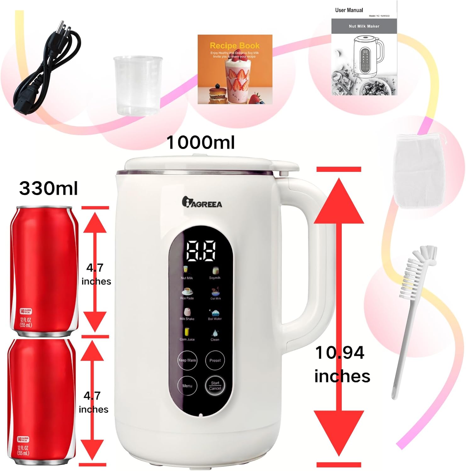 IAGREEA 8 in 1 Nut Milk Maker Machine Stainless Steel Lid BPA Free for Homemade Almond/Oat/Soymilk, 35 oz(1L) Almond Milk Maker Machine with 8 Mins Self-Cleaning, 2 hrs Keep Warm, 750W Stirring Power