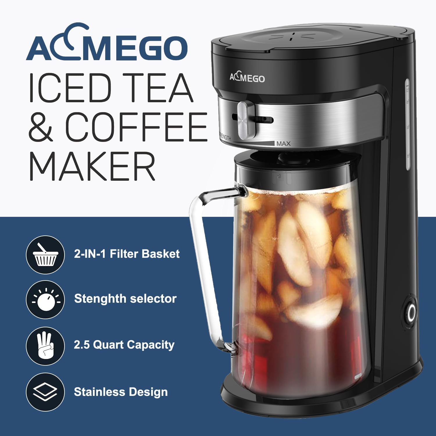 2.5 QUART GLASS PITCHER – The Aemego Iced Tea Machine with a 2.5-quart large glass pitcher can brew cups of tea or coffee at a time. The pitcher has a large handle for easy lifting and pouring; dishwasher safe for easy cleaning.