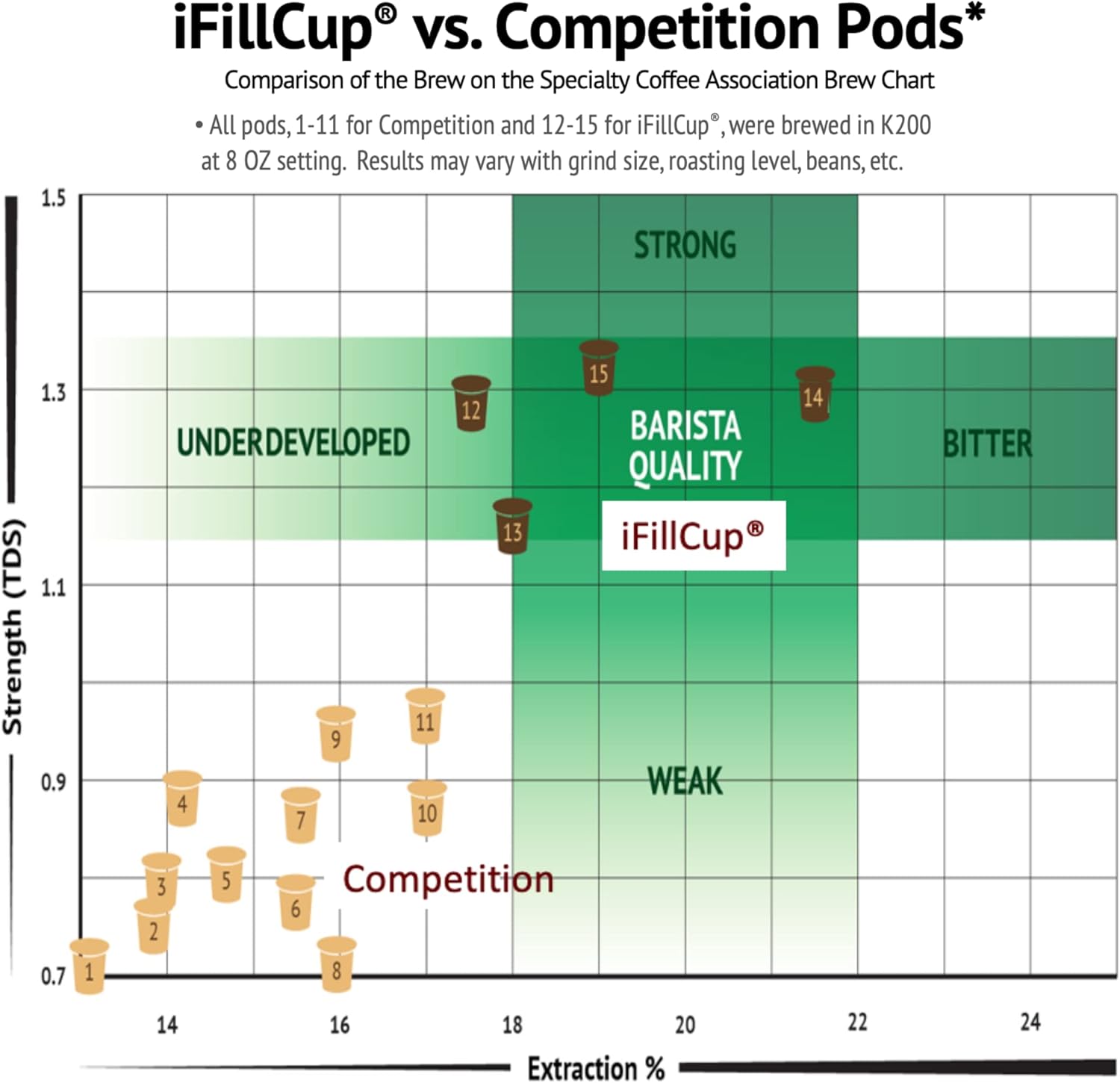 BETTER BY DESIGN: Coffee is a complex product. Even when growers and roasters do absolutely everything right, all their efforts might go for naught if the grinding and brewing isn’t just as perfect as every other step. Other pods commonly have weak and shallow paper filters requiring coarse grounds and smaller fills, resulting in a weaker brew. iFillCup Deep Brewing technology allows full contact to ground coffee with larger coffee chamber and stronger polypropylene filter