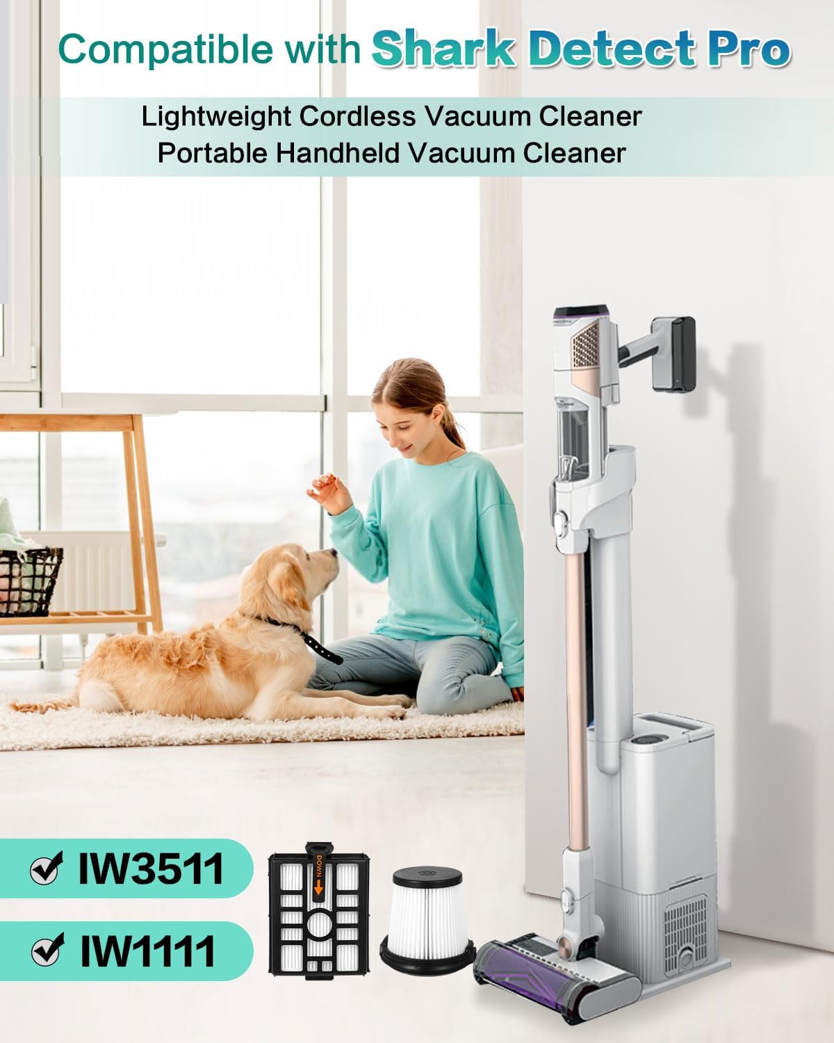 IW3511 IW3120 HEPA Filters Replacement Parts Compatible with Shark IW3511 Detect Pro Cordless Stick Vacuum Cleaner and Shark IW3120 Detect Clean Auto Empty System, IW1111, IW1120, IW3615 (1Pack)