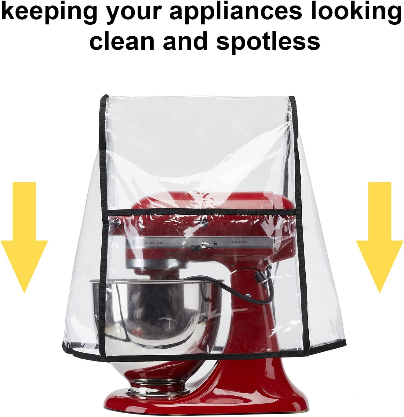 【CLEAR MIXER COVER WATERPROOF】-Kitchenaid mixer attachmentsSurface material made of thicken PEVA, keep the machine from erosion by the vapor. This mixer cover can fit KitchenAid Artisan, Kitchen Aid Professional, Kitchen Aid Classic, Hamilton Beach, Sunbeam Mixmaster, Cuisinart stand mixer.