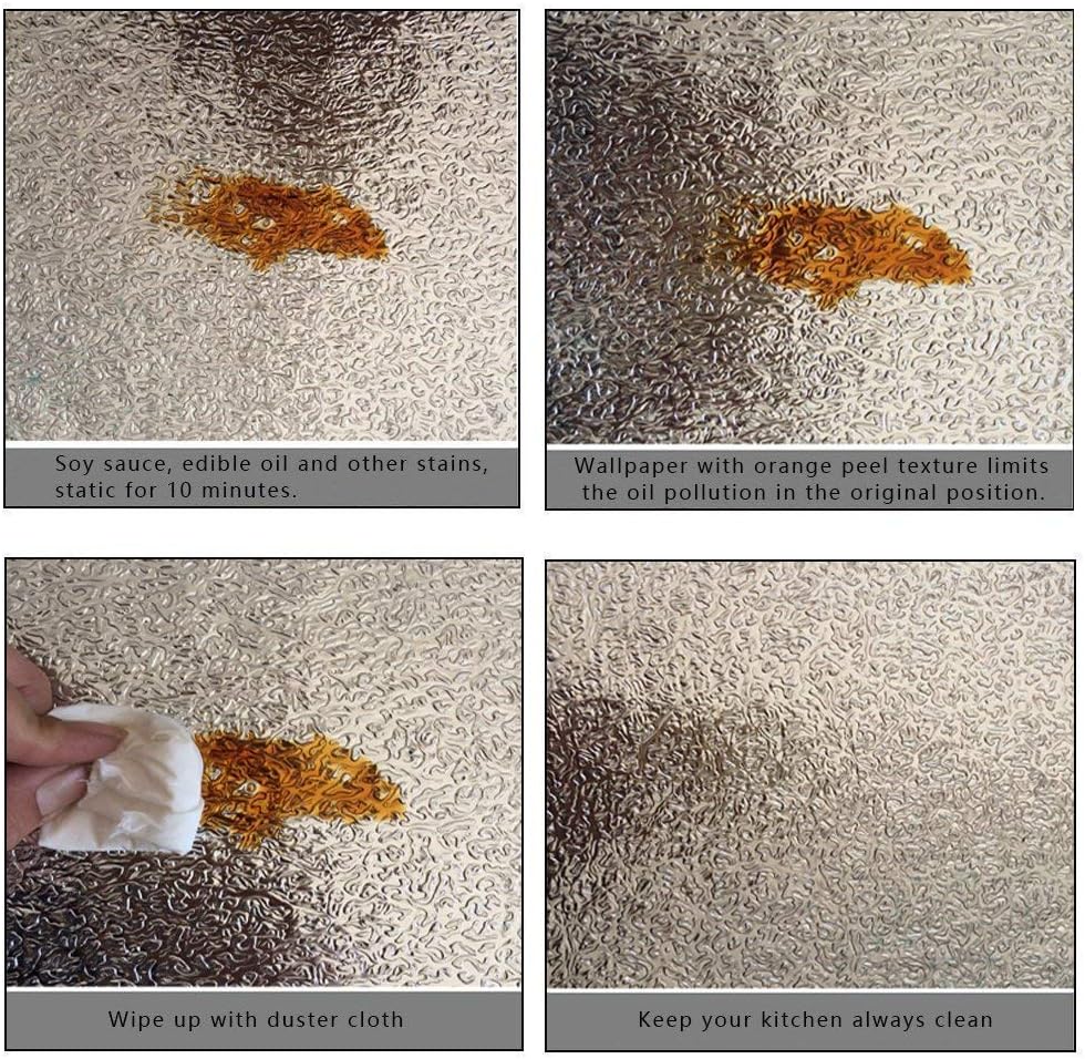 Kitchen Backsplash Sticker,Aluminum Foil Orange Peel Texture Wall Paper, Waterproof Removable High Temperature Resistant DIY Wallpaper,Kitchen Wall Stickers (0.4m x 3m)