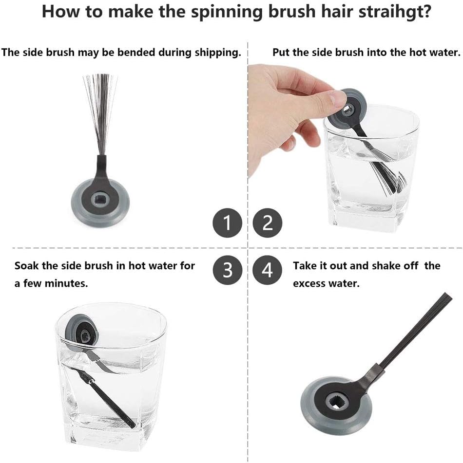 Accessories Package includes 1 Main Brush & 2 Side Brushes & 6 Vacuum Filters & 1 Cleaner Brush. Product Dimensions: Main Brush length 6.69 inches,Side Brushes length 3.8 inches ,Vacuum Filters 4*3.93*0.62 inches.