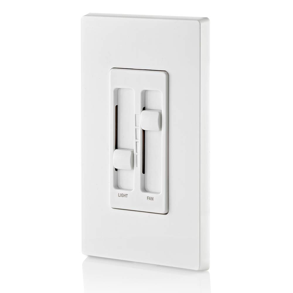 Leviton SureSlide Ceiling Fan Control and Dimmer Switch for LED, Halogen and Incandescent Bulbs, 66DF-10W, White