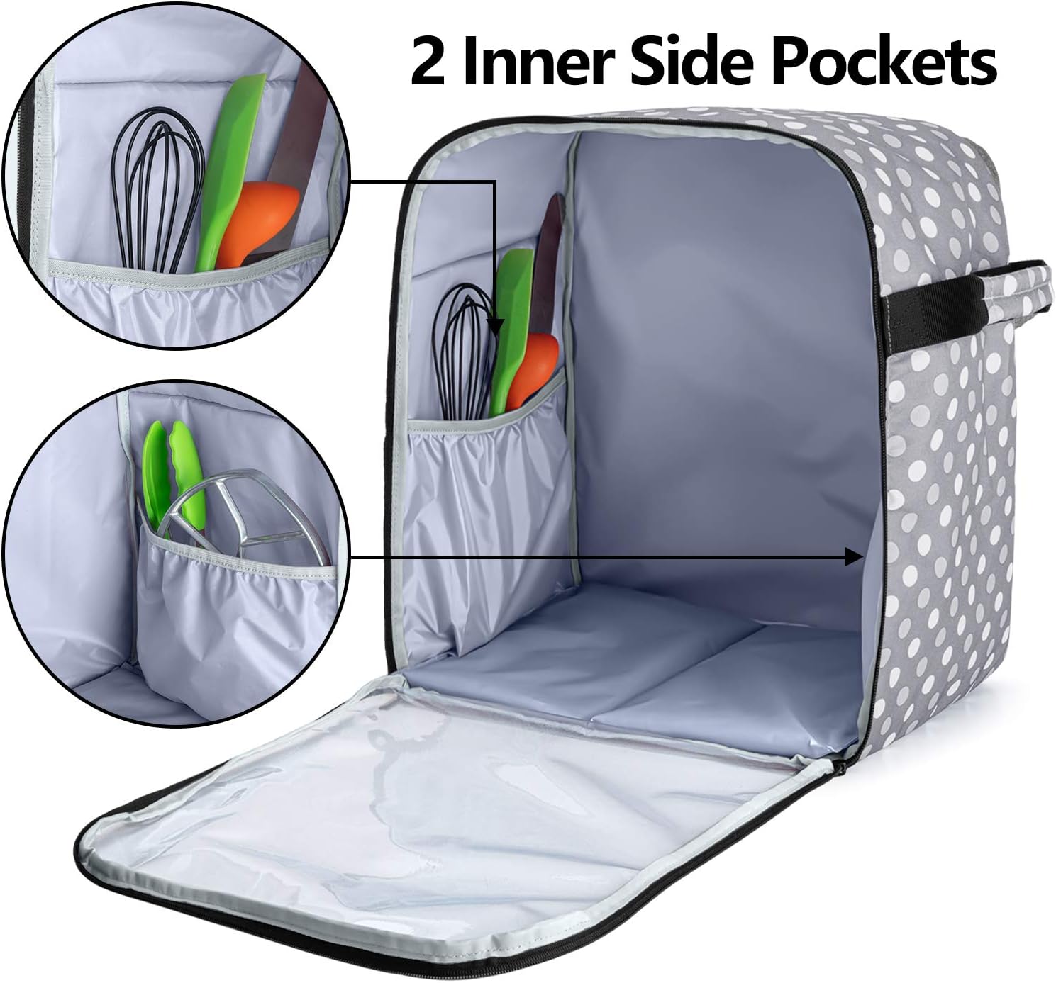 SECURE AND PROTABLE: Come with a removable bottom padding pad, which helps reduce the risk of bumping. Two side padding handles for lifting the stand mixer easily.