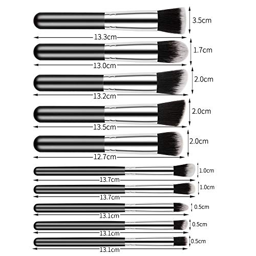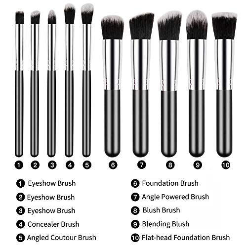 Specification: Makeup Brushes 10pcs, Black Silver Professional Brush Set for Foundation Blush Eye Shadow Blending Concealer Short…