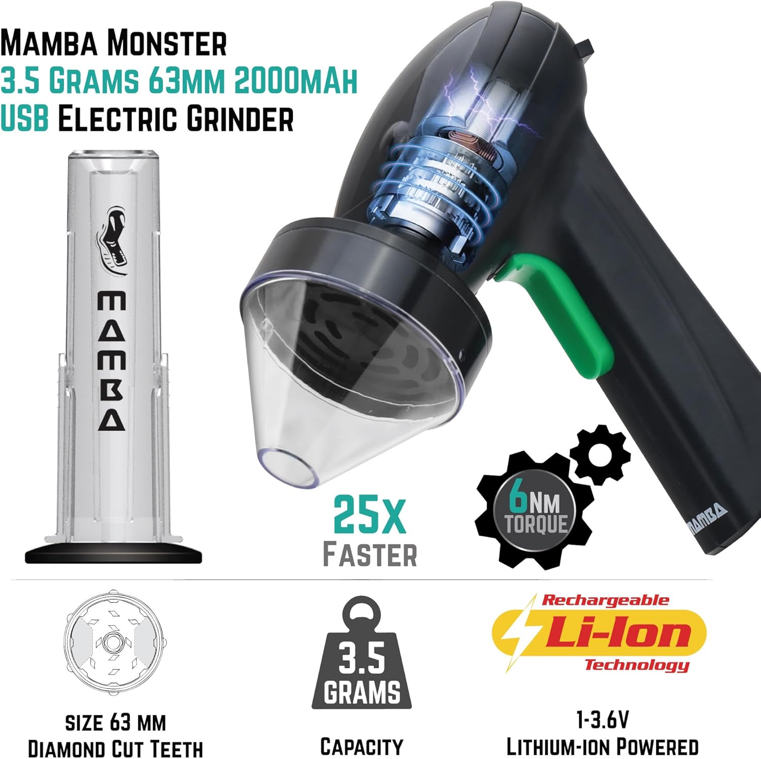 Be the first to review “Mamba Monster 3.5g Black USB Electric Herb Grinder. Large Capacity Portable Metal Herbal Machine & Spice Mill for the Kitchen”