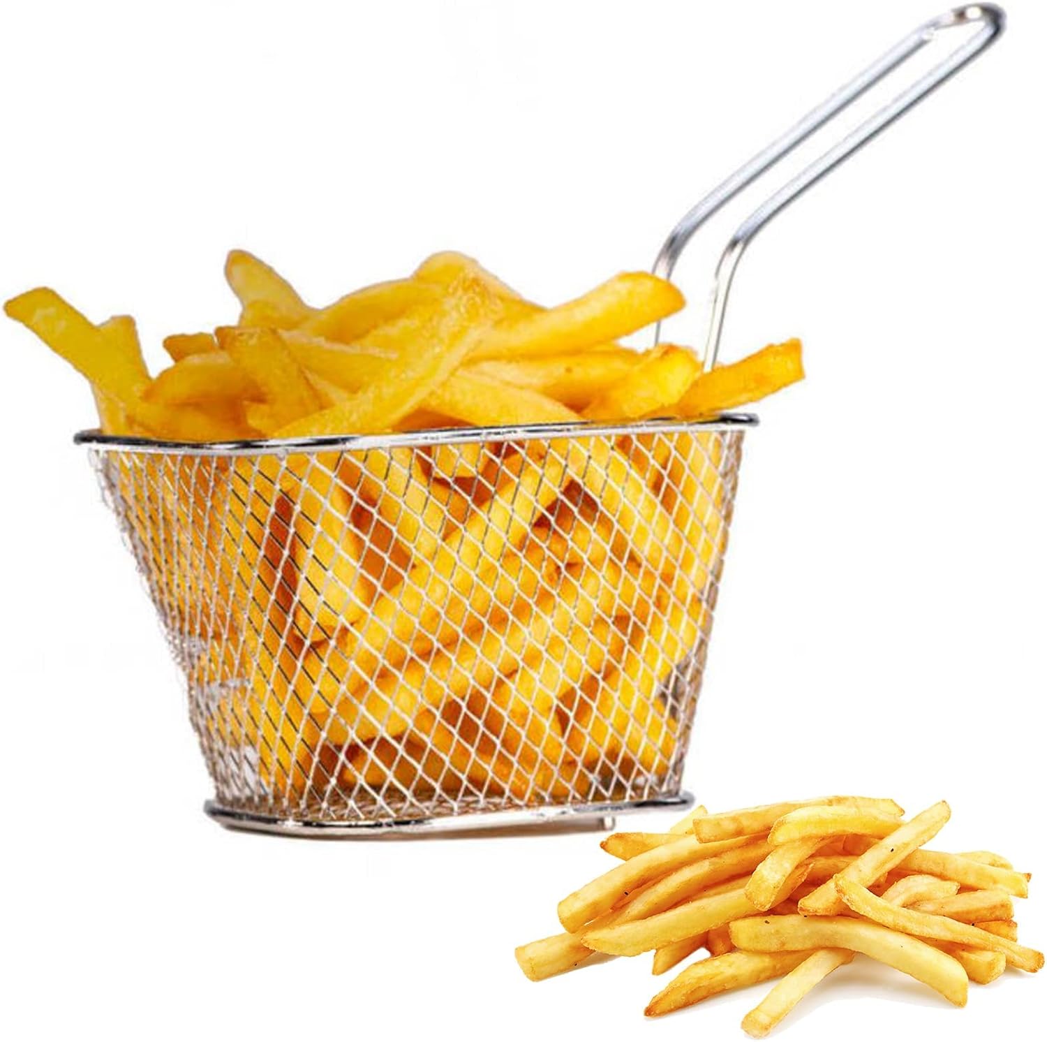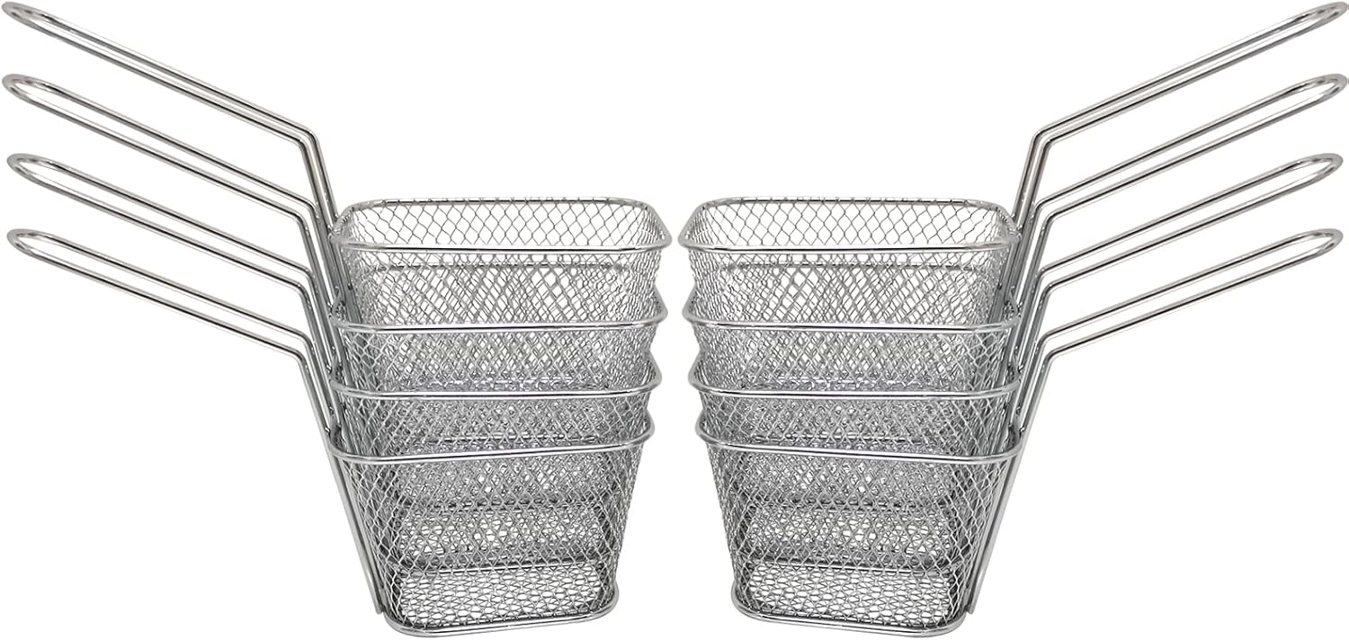 8Pcs Mini Square Fry Basket Food Grade Steel French Fry Chip Basket Net Steel French Fries Holder for Kitchen Restaurant Party Barbecue and More