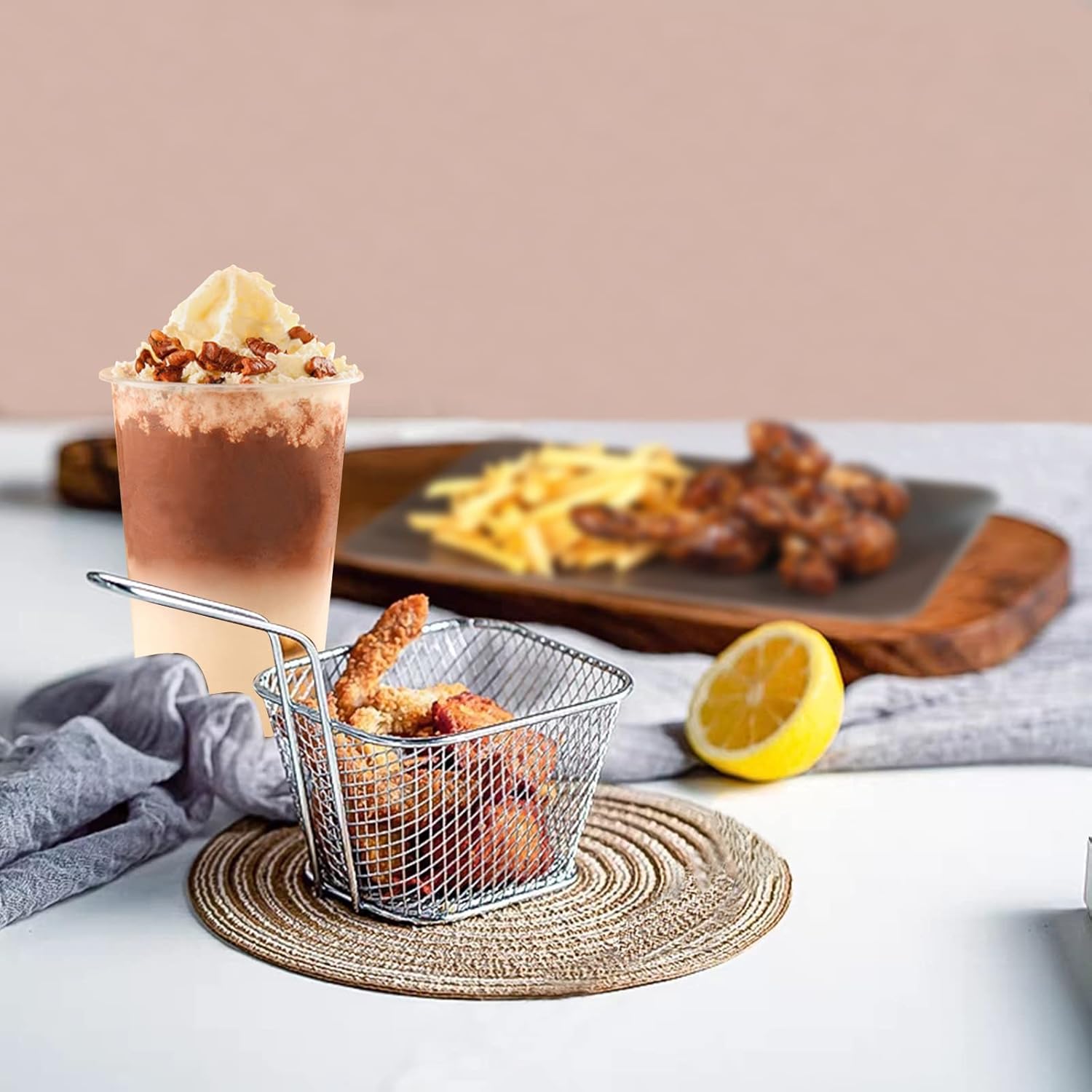 🍟【Wide Application】Our mini square fry basket is suitable for many occasions, parties, backyard picnics, outdoor events, kitchen, restaurant, barbecue, party decor, etc. You can use it to fry food and serve chips, onion rings, chicken wings and more in a creative way.