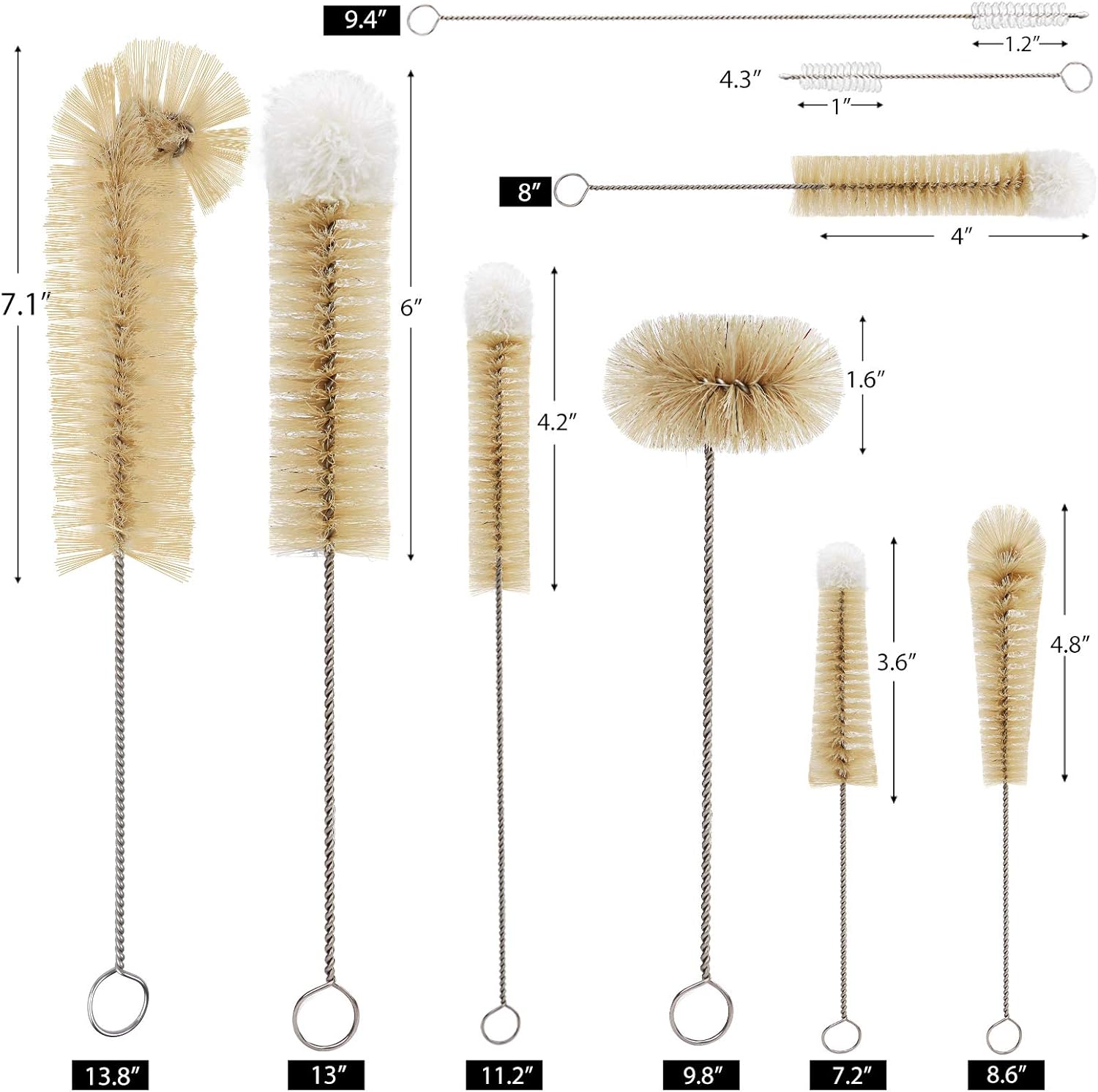 【High Quality】: Our bottle brush set is made of durable and non-scratch natural pig hair. BPA free, 9 piece bottle brushes are available in different sizes, suitable for your all needs. The bristles have smooth feel and non-toxic smell, are arranged neatly and densely, has strong toughness and anti-aging, are safe to use.