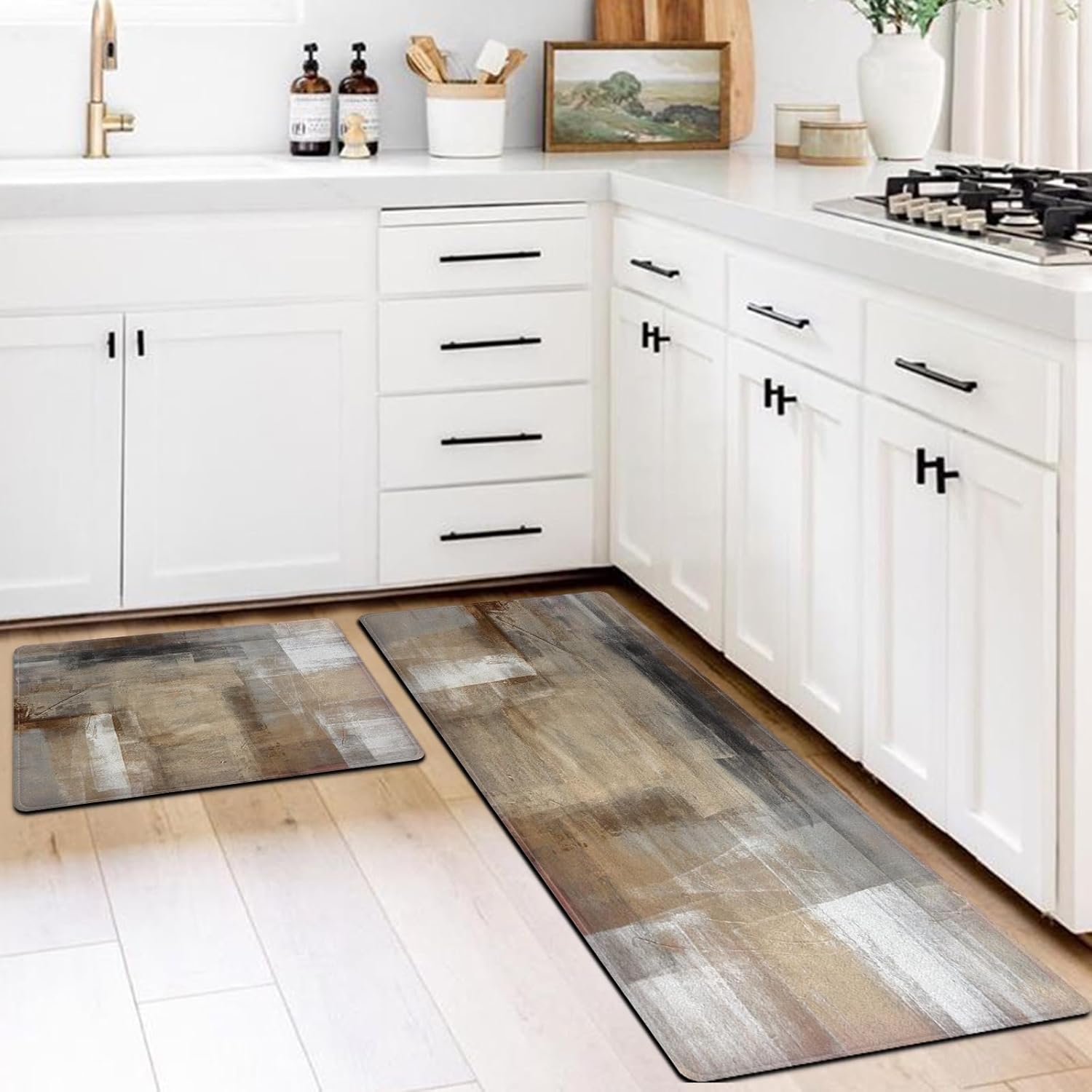 MAYHMYO Kitchen Mat Set of 2 for Floor Brown Black Beige Kitchen Rugs and Mats Non Skid Washable Abstract Art Kitchen Floor Rugs Mats for Dining Room Floor Home Sink Laundry