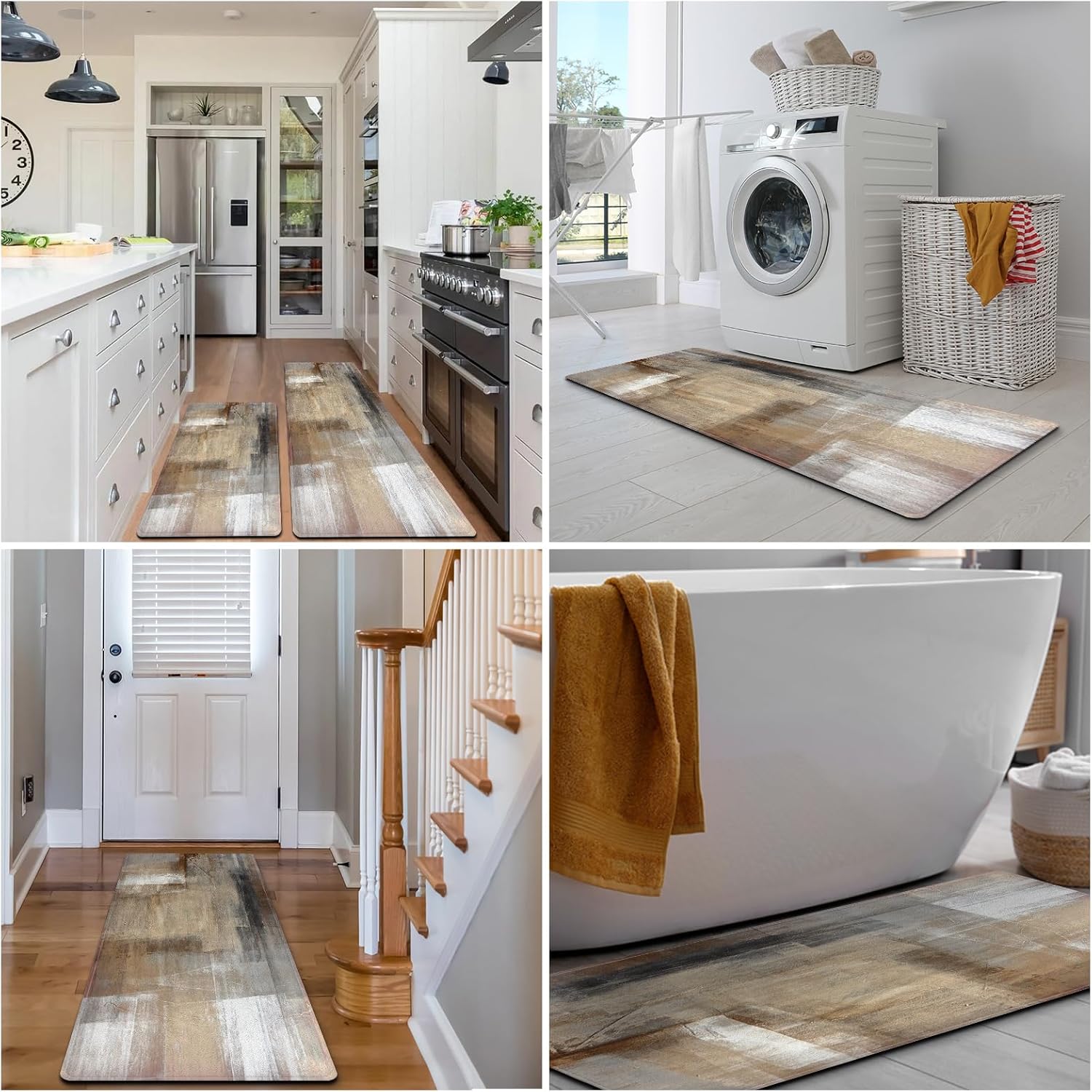 [Material&Easy Care]–The surface of the kitchen mats for floor are made of high-quality polyester fiber,which is practical and beautiful. machine wash separately in cold water. Use mild detergent. Do not bleach or dry clean. Do not use fabric softeners or dryer sheets. Do not wring, line dry for best results.