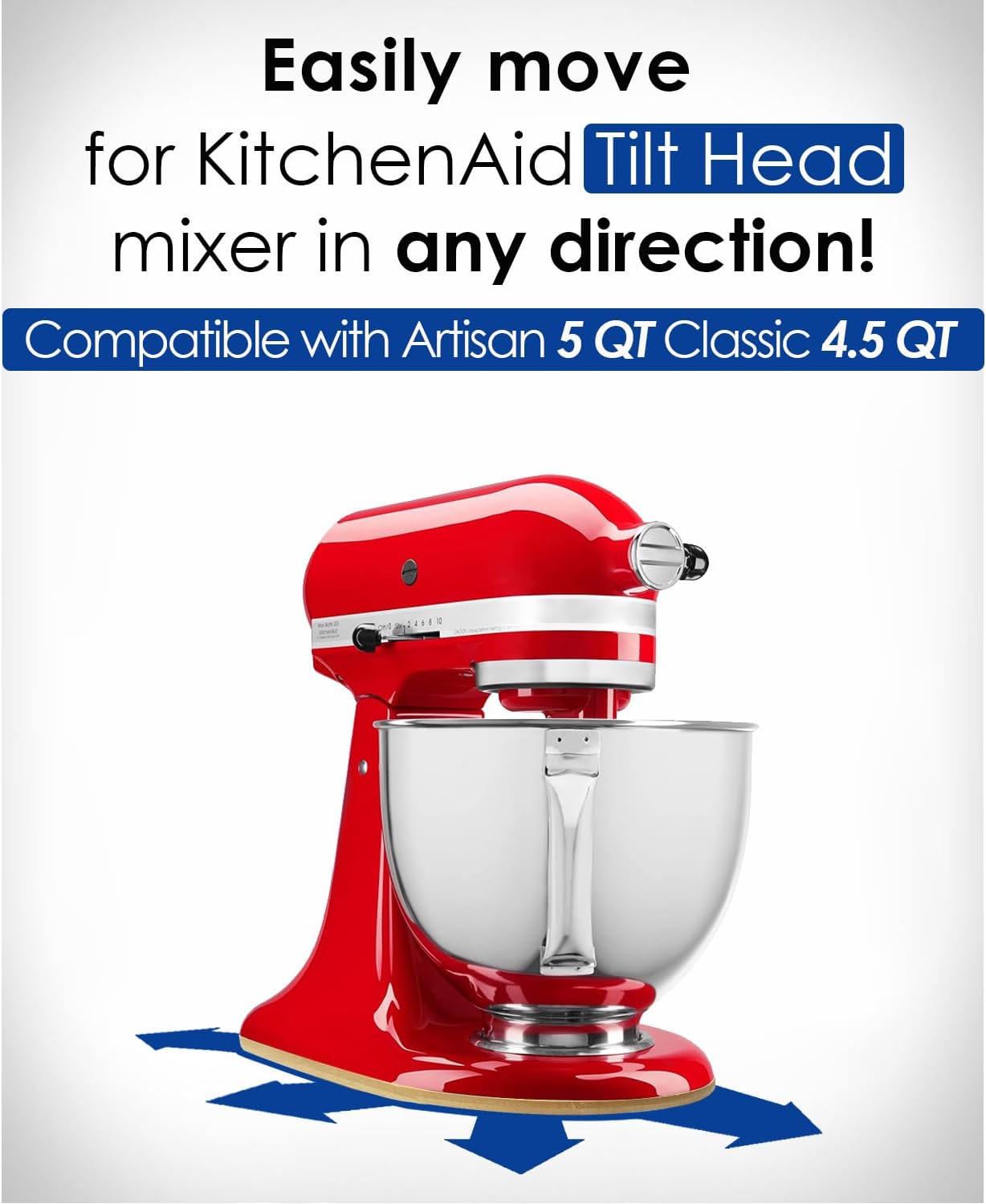 Make your baking and cooking process easier with a mixer slider mat for KitchenAid stand mixer Artisan Series 5 QT Classic 4.5 QT.Enjoy the high quality bamboo material and practical size of this stand mixer slider.Our sliding mat for kitchenaid mixer can rotate and move your heavy mixer with ease from where you store on your kitchen counter to the space in front of you.The flexible and practical mixer slider design allows for increased versatility when moving your kitchen appliances compared to other manual mixer slider mat which allow for limited maneuverability.With the slightest tug, your tilt-head mixer goes easily where you want it without any frustration.Mimore bamboo slider for kitchenaid mixer can help you easily to move your 4.5-5 qt tilt head mixer from the storage corner to the operation.Compatible with kitchen Aid mixer slider 4.5-5 qt tilt-head stand mixer Artisan & Classic series.