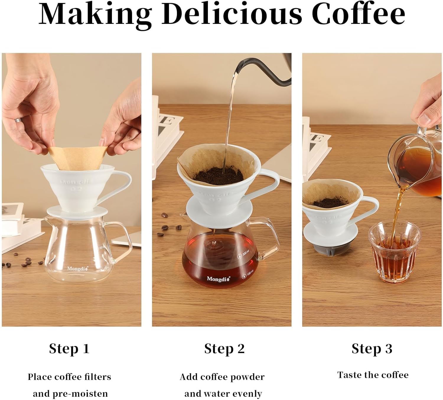 【Easy to Clean】: You can easily clean our ceramic pour over coffee maker, just rinse it with water and wipe it dry, or just put it in the dishwasher to clean it, you can not only experience the traditional pleasure of hand-brewed coffee, but also have a cup or two of coffee anytime and anywhere.