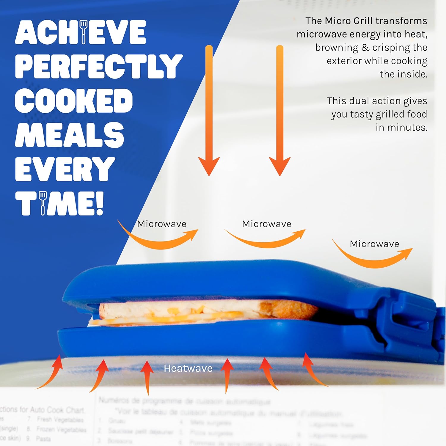 Quick & Delicious Grilling: Enjoy crispy grilled cheese sandwiches, juicy beef patties, and perfectly toasted paninis in just 4 minutes with the Micro Grill microwave sandwich maker.