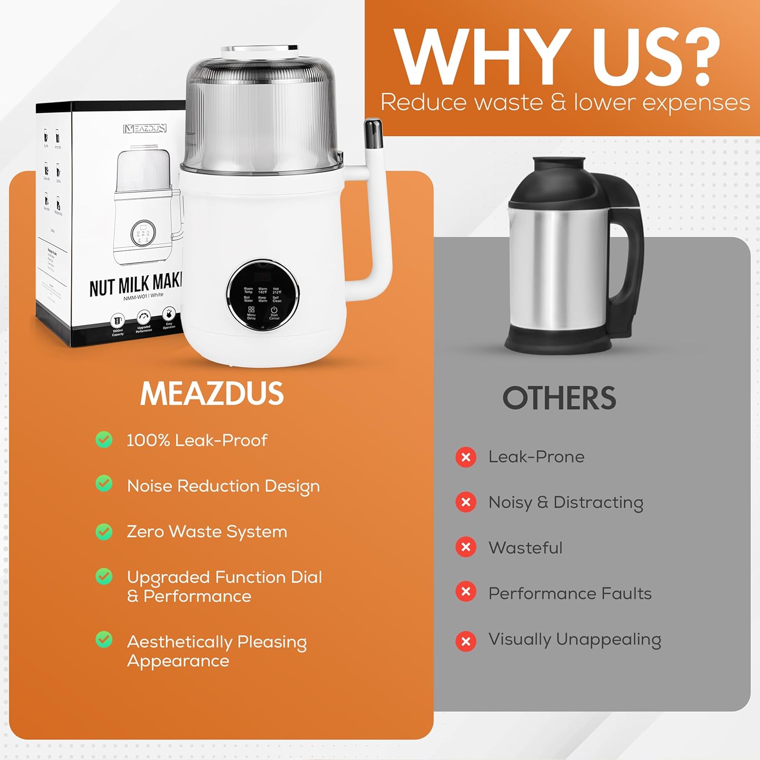 STAY HOME & SAVE – The MEAZDUS soy milk maker is a smart and healthy alternative to purchasing cartons of plant-based milks. Save the trip to the store and enjoy up to 32oz of cold, dairy-free milk or up to 27oz of hot, dairy-free milk without any accompanying waste!